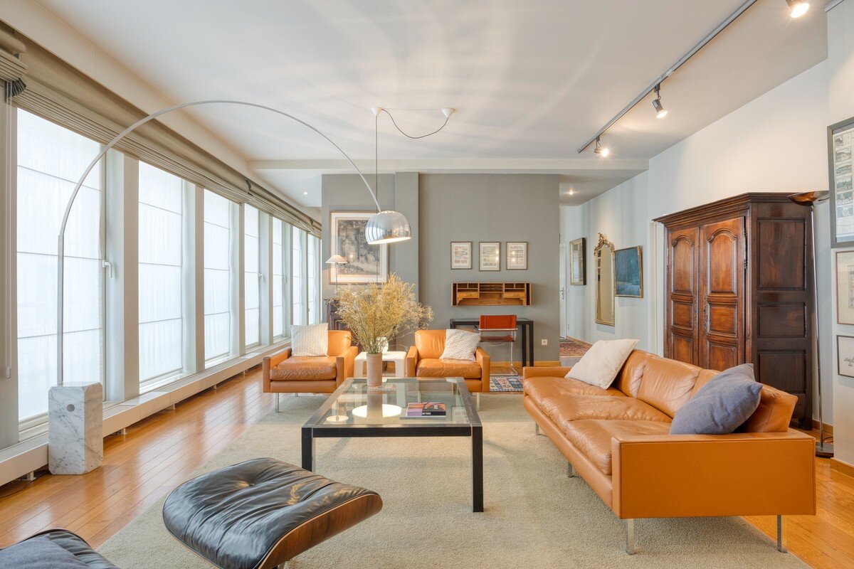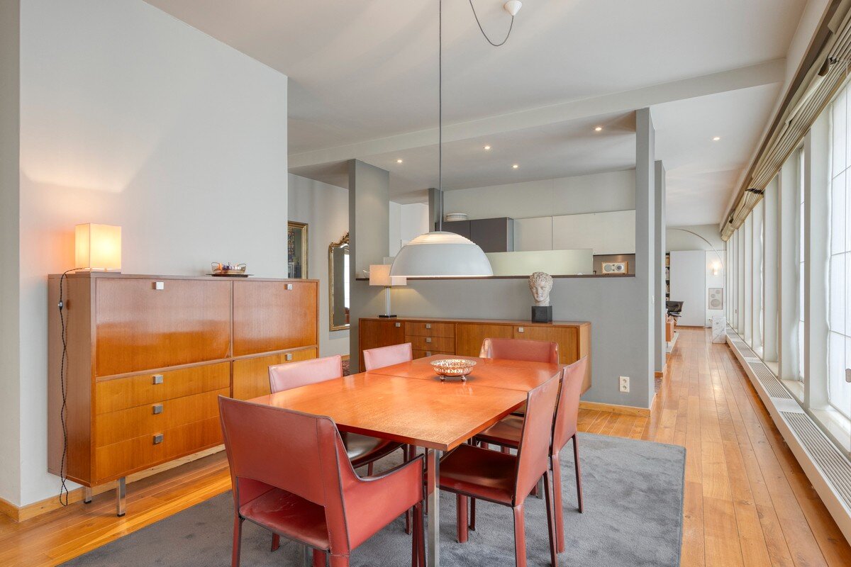 Dit erg ruime en stijlvolle stadsappartement onderscheidt zich door het enorme ruimtegevoel, de lange raampartijen en het volume. Het B-label appartement combineert het comfort van een moderne woonruimte met de warme uitstraling van een karaktervol interieur. De grote living met parket in eik vormt het kloppende hart van het appartement en vloeit harmonieus over in de open eetkamer, terwijl de mooi afgewerkte keuken de ruimtes subtiel opdeelt, wat zorgt voor een praktische indeling zonder in te boeten aan sfeer.