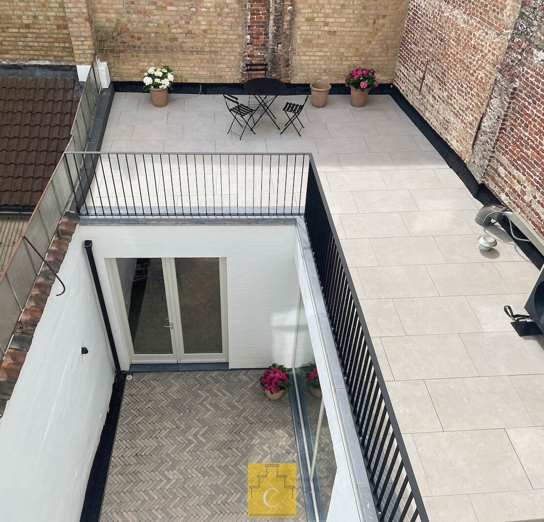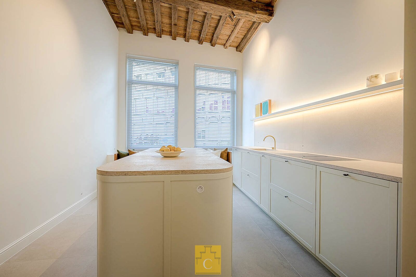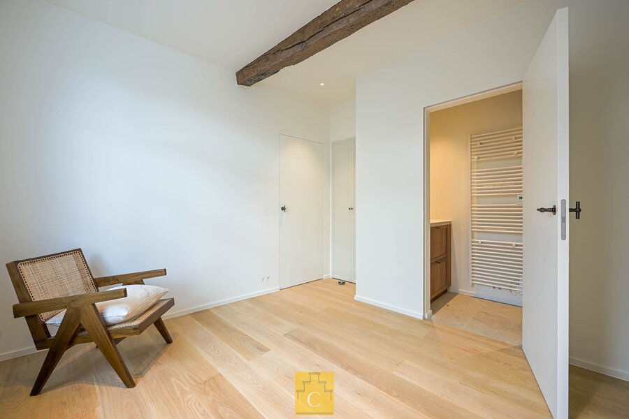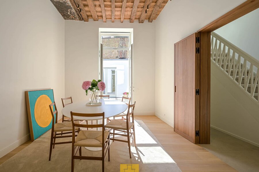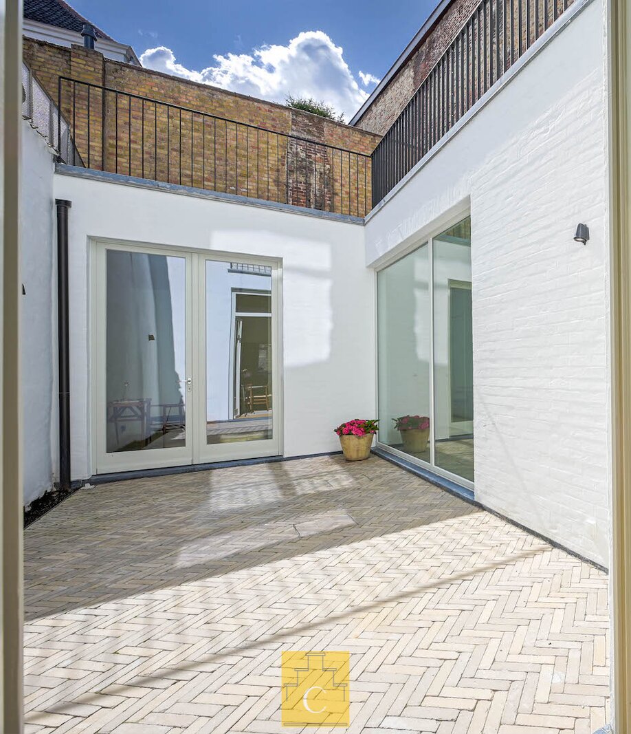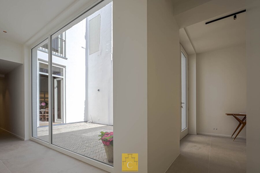 Op één van de meest iconische en begeerde locaties in het hart van Brugge — het idyllische Sint-Jansplein, vlak bij de Markt, de schouwburg en de wereldberoemde reien — bevindt zich dit uitzonderlijk diephuis, een architecturale parel die zowel geschiedenis ademt als hedendaags comfort biedt. Dit authentieke pand met drie traveeën en drie bouwlagen onder zadeldak is een zeldzame vondst in Brugge’s historisch patrimonium. De gevel draagt de sporen van een rijk verleden, terwijl het interieur volledig werd ondergedompeld in een high-end renovatie die tot in de kleinste details verfijning en kwaliteit uitstraalt. Elk element van deze woning werd met uiterste zorg geselecteerd en gerealiseerd. Denk aan maatwerkmeubilair, fineerafwerkingen, edele materialen, moderne technieken discreet geïntegreerd in de historische context, massieve parketvloeren en hoge balkenlagen, ambachtelijk pleisterwerk dat aansluit bij het authentieke karakter.. De leefruimtes baden in natuurlijk licht en bieden uitzicht op het levendige plein én een verrassend rustige terrastuin achteraan. De keuken is een statement van luxe en functionaliteit, perfect voor zowel intiem thuisgebruik als stijlvolle ontvangst. De slaapkamers en ensuite badkamers bieden hotelwaardige comfort, waarbij ook hier enkel gebruik werd gemaakt van topmaterialen en tijdloos design. Dit pand is geen klassiek woonhuis — het is een statement, een stuk erfgoed, een levensstijl. Een thuis voor wie het buitengewone waardeert, voor wie kwaliteit en karakter vooropstaan. Indeling : gelijkvloers : royale inkom met dubbele glazen deur, traphal, vestiaire en gastentoilet. Aan de kant van het plein een keuken met een zelden gezien afwerking (oa eiland in Chambolle natuursteen, toestellen van V-Zug, ingebouwde zitbank in notelaar). Een verborgen deur leidt naar de eetkamer, die uitgeeft op de patio (zuid-west oriëntatie).Verder op het gelijkvloers een handige technische ruimte en een bureau, ruimtes die ook perfect zouden kunnen dienen als slaapkamer en badkamer. Op de 1ste verdieping is er aan de pleinkant een subliem salon met 3 hoge dubbele ramen en een uitzicht om U tegen te zeggen. Opnieuw via een verborgen deur bereiken we de bibliotheek/bar, heel cosy, volledig in notelaar en voorzien van wastafel, vaatwas en koelkast, uitgevend op de knappe en goed bezonde terrastuin. Op de tweede verdieping 2 knappe slaapkamers, beiden met badkamer ensuite en een apart toilet. Via een trap met een leuke twist bereiken we de master suite, met volledige dressing en eigen badkamer met ligbad, dubbele wastafel, toilet en grote inloopdouche (zicht op het Belfort). G-score : A - P-score: A