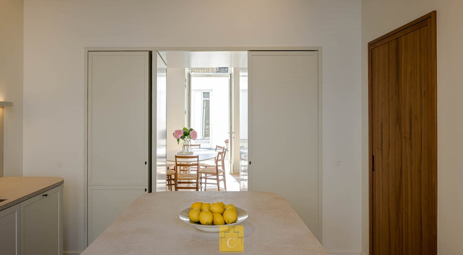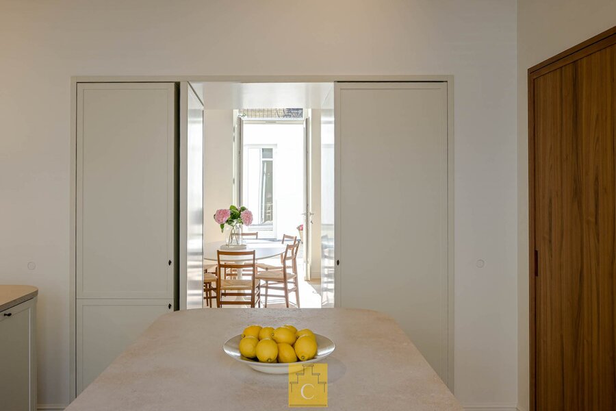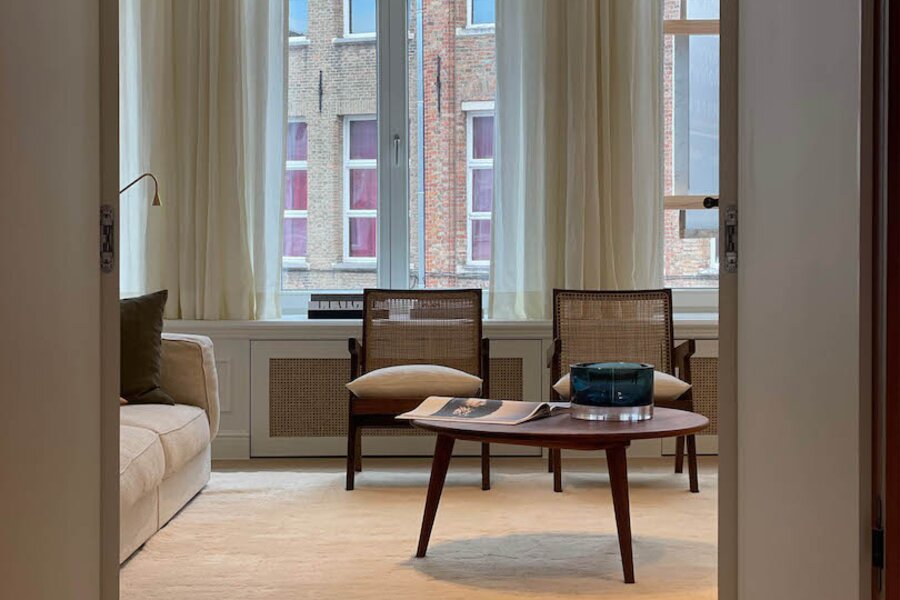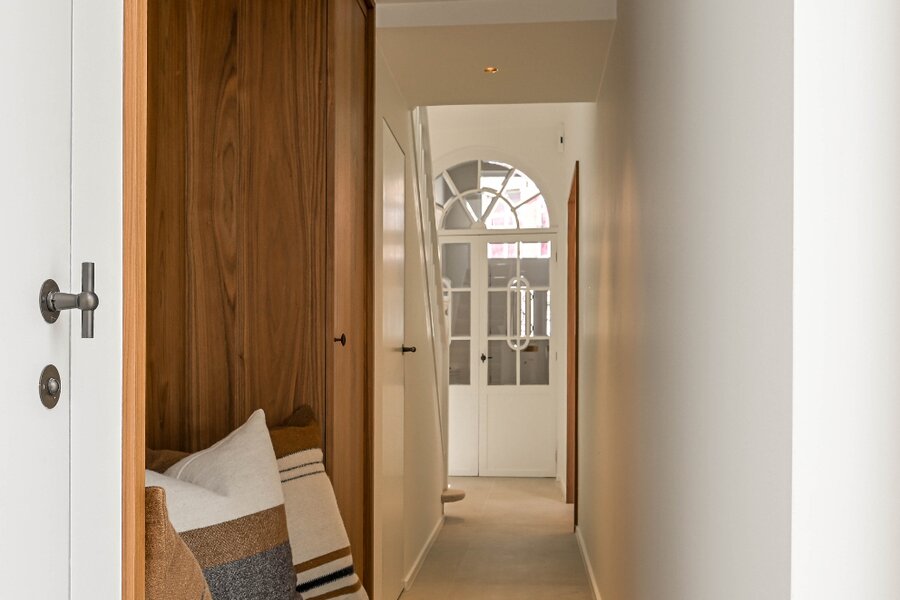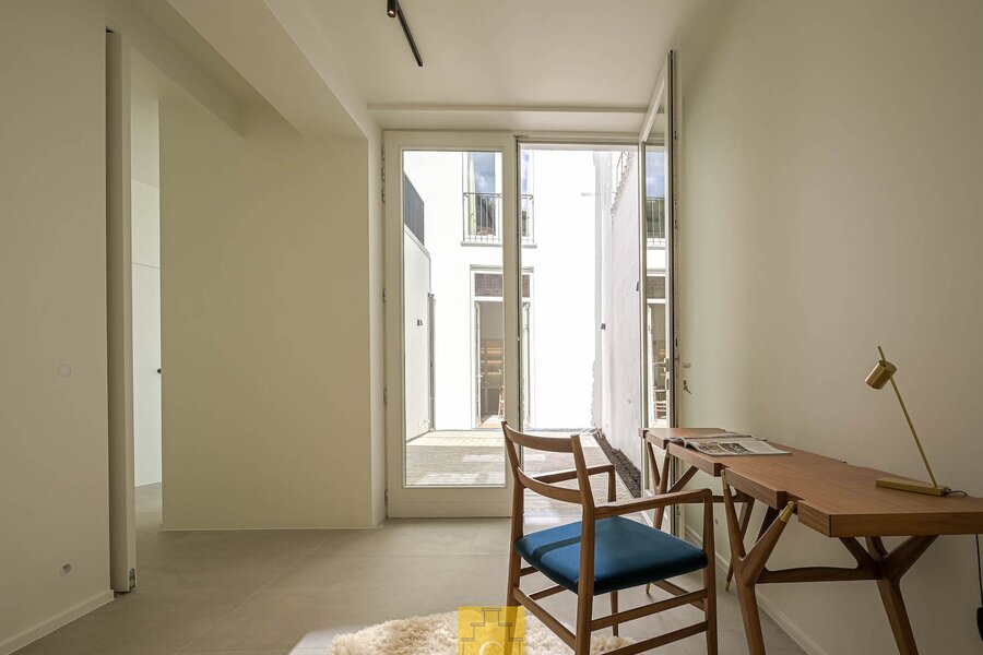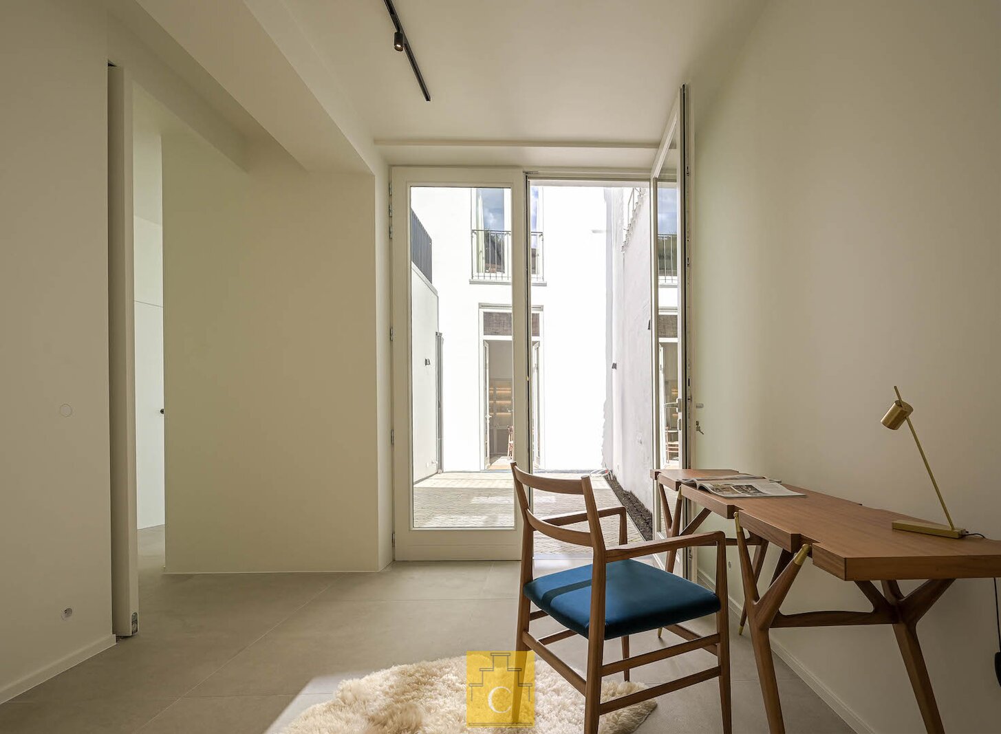 Op één van de meest iconische en begeerde locaties in het hart van Brugge — het idyllische Sint-Jansplein, vlak bij de Markt, de schouwburg en de wereldberoemde reien — bevindt zich dit uitzonderlijk diephuis, een architecturale parel die zowel geschiedenis ademt als hedendaags comfort biedt. Dit authentieke pand met drie traveeën en drie bouwlagen onder zadeldak is een zeldzame vondst in Brugge’s historisch patrimonium. De gevel draagt de sporen van een rijk verleden, terwijl het interieur volledig werd ondergedompeld in een high-end renovatie die tot in de kleinste details verfijning en kwaliteit uitstraalt. Elk element van deze woning werd met uiterste zorg geselecteerd en gerealiseerd. Denk aan maatwerkmeubilair, fineerafwerkingen, edele materialen, moderne technieken discreet geïntegreerd in de historische context, massieve parketvloeren en hoge balkenlagen, ambachtelijk pleisterwerk dat aansluit bij het authentieke karakter.. De leefruimtes baden in natuurlijk licht en bieden uitzicht op het levendige plein én een verrassend rustige terrastuin achteraan. De keuken is een statement van luxe en functionaliteit, perfect voor zowel intiem thuisgebruik als stijlvolle ontvangst. De slaapkamers en ensuite badkamers bieden hotelwaardige comfort, waarbij ook hier enkel gebruik werd gemaakt van topmaterialen en tijdloos design. Dit pand is geen klassiek woonhuis — het is een statement, een stuk erfgoed, een levensstijl. Een thuis voor wie het buitengewone waardeert, voor wie kwaliteit en karakter vooropstaan. Indeling : gelijkvloers : royale inkom met dubbele glazen deur, traphal, vestiaire en gastentoilet. Aan de kant van het plein een keuken met een zelden gezien afwerking (oa eiland in Chambolle natuursteen, toestellen van V-Zug, ingebouwde zitbank in notelaar). Een verborgen deur leidt naar de eetkamer, die uitgeeft op de patio (zuid-west oriëntatie).Verder op het gelijkvloers een handige technische ruimte en een bureau, ruimtes die ook perfect zouden kunnen dienen als slaapkamer en badkamer. Op de 1ste verdieping is er aan de pleinkant een subliem salon met 3 hoge dubbele ramen en een uitzicht om U tegen te zeggen. Opnieuw via een verborgen deur bereiken we de bibliotheek/bar, heel cosy, volledig in notelaar en voorzien van wastafel, vaatwas en koelkast, uitgevend op de knappe en goed bezonde terrastuin. Op de tweede verdieping 2 knappe slaapkamers, beiden met badkamer ensuite en een apart toilet. Via een trap met een leuke twist bereiken we de master suite, met volledige dressing en eigen badkamer met ligbad, dubbele wastafel, toilet en grote inloopdouche (zicht op het Belfort). G-score : A - P-score: A
