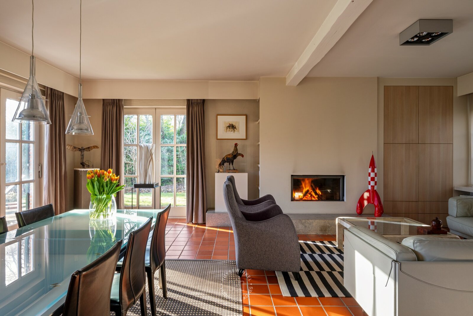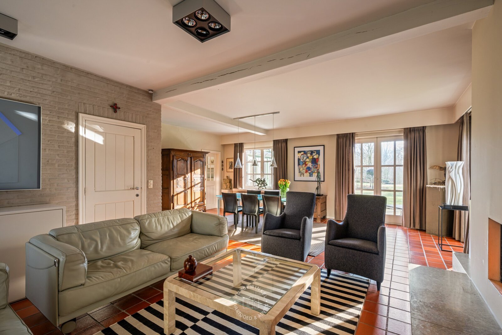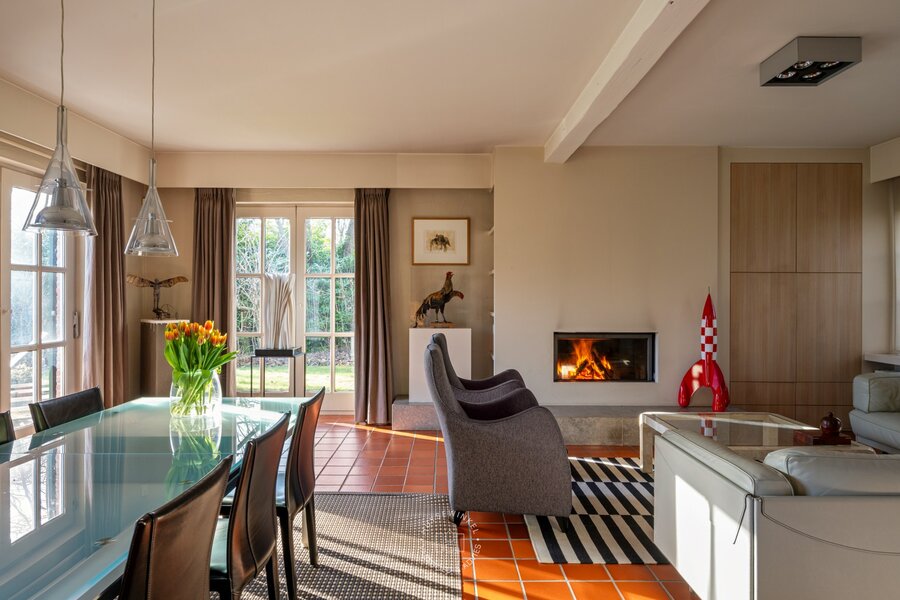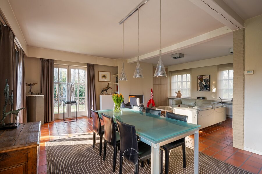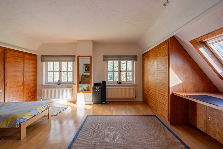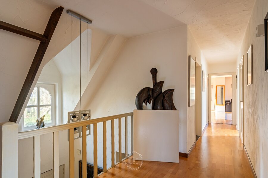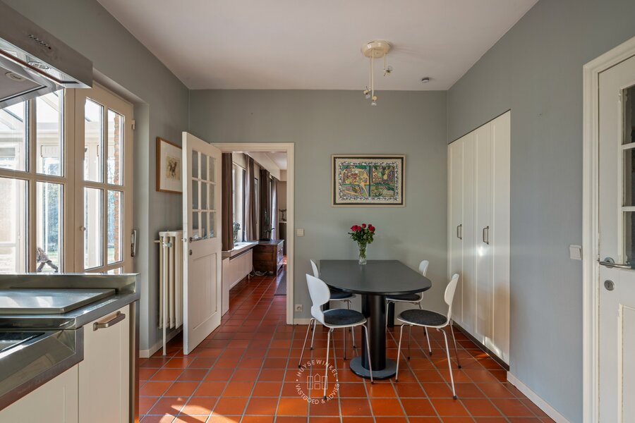 Gelegen in één van de meest residentiële en rustige straten van Stekene, bevindt zich deze charmante landelijke villa, omgeven door groen en rust, op een uitzonderlijk perceel van maar liefst 4,2 hectare. Natuur, privacy en sereniteit vormen hier zonder twijfel de absolute troeven. De woning werd opgetrokken in de jaren ’80 en is doorheen de jaren uiterst zorgvuldig onderhouden. Via de ruime inkomhal met vestiaire en gastentoilet krijgt u toegang tot een apart bureel en de lichtrijke woonkamer met gezellige zit- en eethoek. Aansluitend bevindt zich de volledig uitgeruste keuken, voorzien van alle hedendaags comfort. Verder beschikt het gelijkvloers over een praktische koele berging/wasplaats en een dubbele inpandige garage. Aan de keuken grenst een fraai opgetrokken veranda, waar het aangenaam vertoeven is met een prachtig uitzicht op de stijlvol aangelegde parktuin en het privatieve bos. De nachthal leidt naar vier volwaardige slaapkamers en twee badkamers, waarvan de badkamer bij de master bedroom recent werd gerenoveerd. De tuin is een ware oase van rust met meerdere ontspanningsplekken, een vijver en een uitgestrekt privatief bos, ideaal voor natuurliefhebbers en wie absolute privacy wenst.