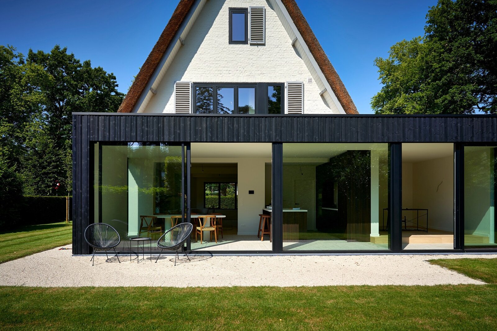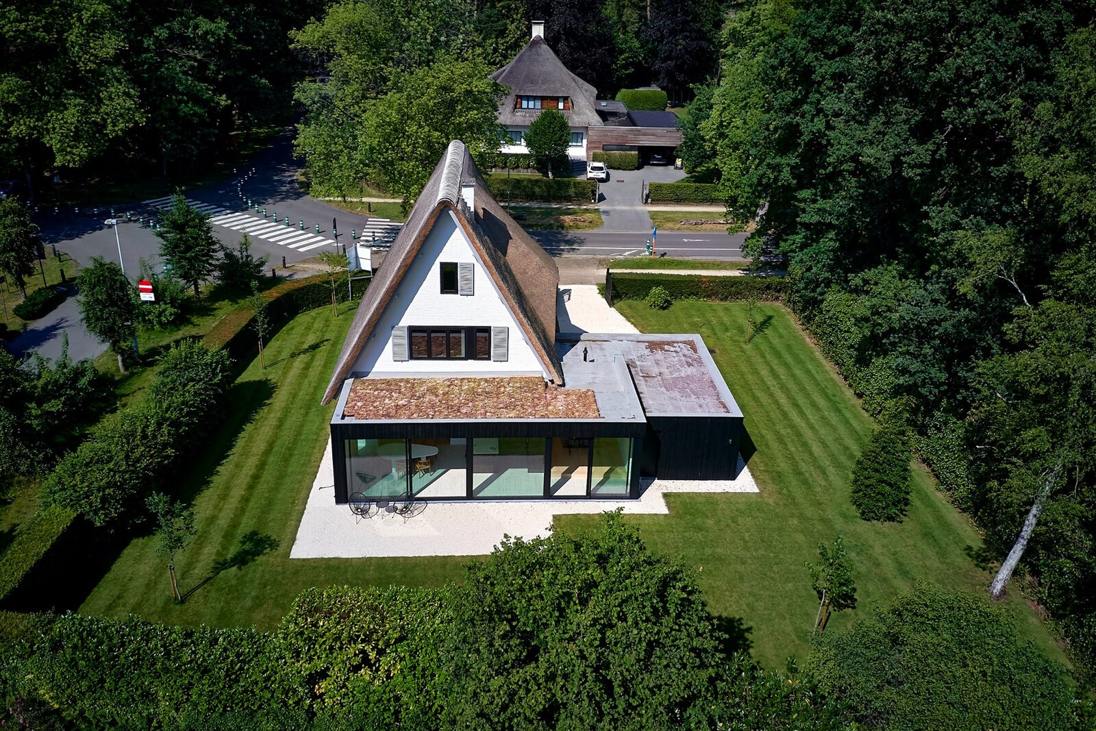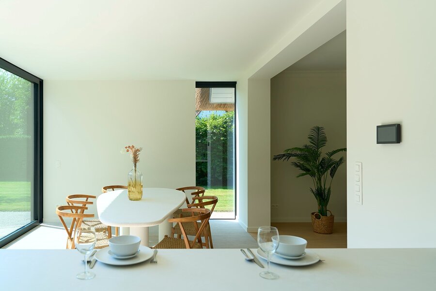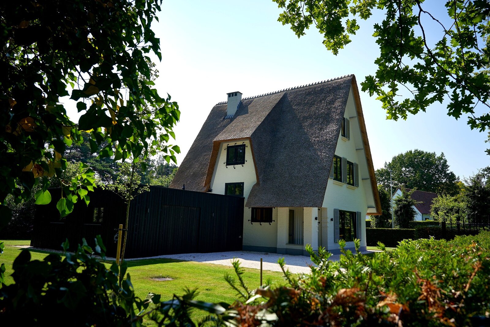 Op een uiterst gunstige locatie, werd deze charmante villa met rieten dak herbouwd op en perceel van ca. 1.026m².