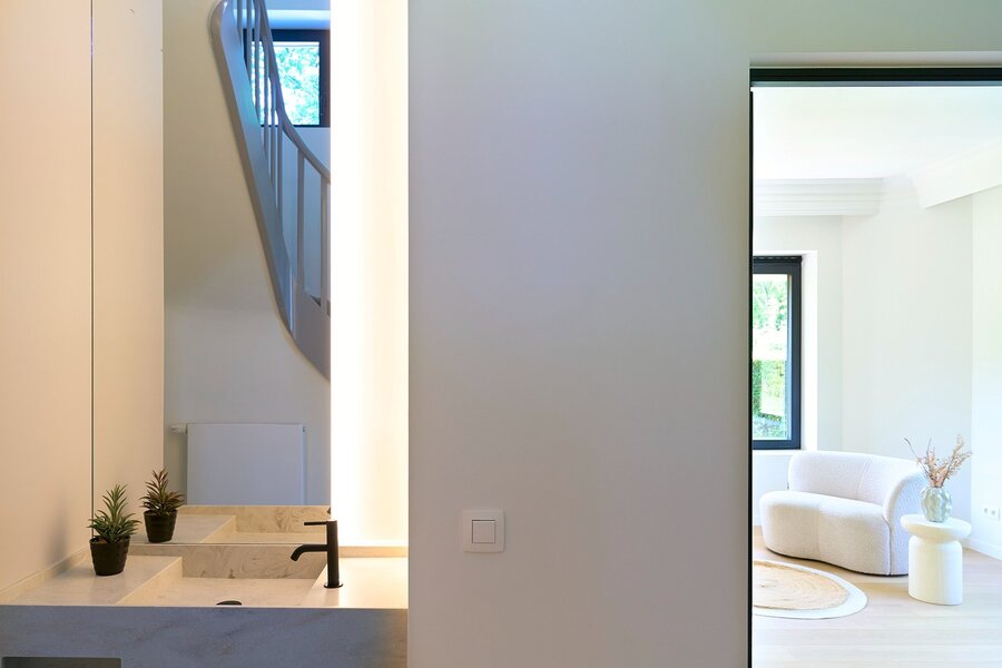 Opmerkingen: vaak zien we dergelijke projecten verschijnen waar men wel eens vergeet om ook bepaalde zaken te vernieuwen en dan spreken we over decorbouw! Dit eigendom werd onder supervisie en architect en promotor voorzien van alle hedendaags comfort en de woning werd effectief volledig gestript tot op de grond. Loodgieterij, elektra, cv zijn allemaal nieuw, alsook het dak, ramen, vloeren, stukwerk, enz. Een duurzame en luxe keuze van het interieur maken dit eigendom voor u instap klaar!