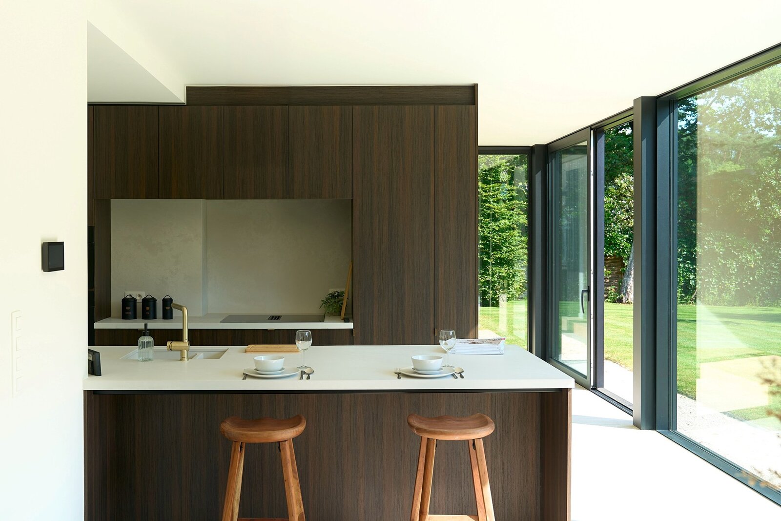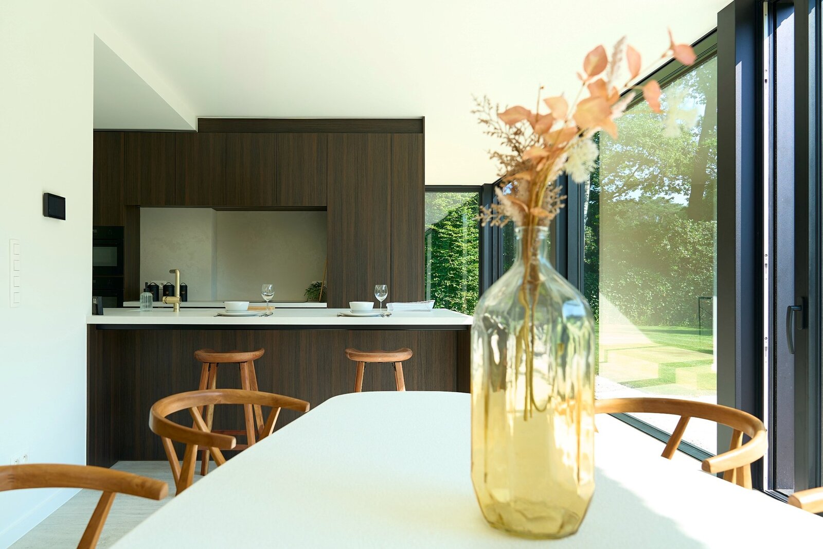 Indeling gelijkvloers: gezellige entree met afdakje, hall met ingemaakte vestiairekast en moderne handenwasser, gastentoilet, leefruimte met ruim zitgedeelte en veel lichtinval dankzij de mooie raampartijen, aparte eethoek in de tuinkamer met eveneens grote raampartijen, volledig geïnstalleerde keuken, en een huisbureel of studie of extra speelkamer, ruime berging met aansluitingen voor was en droogautomaat, ruime garage voor 1 wagen.