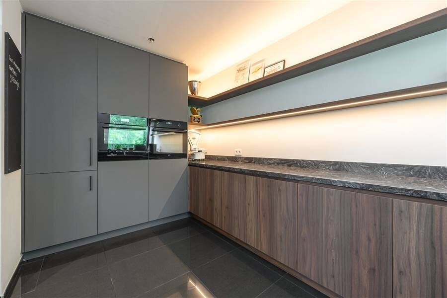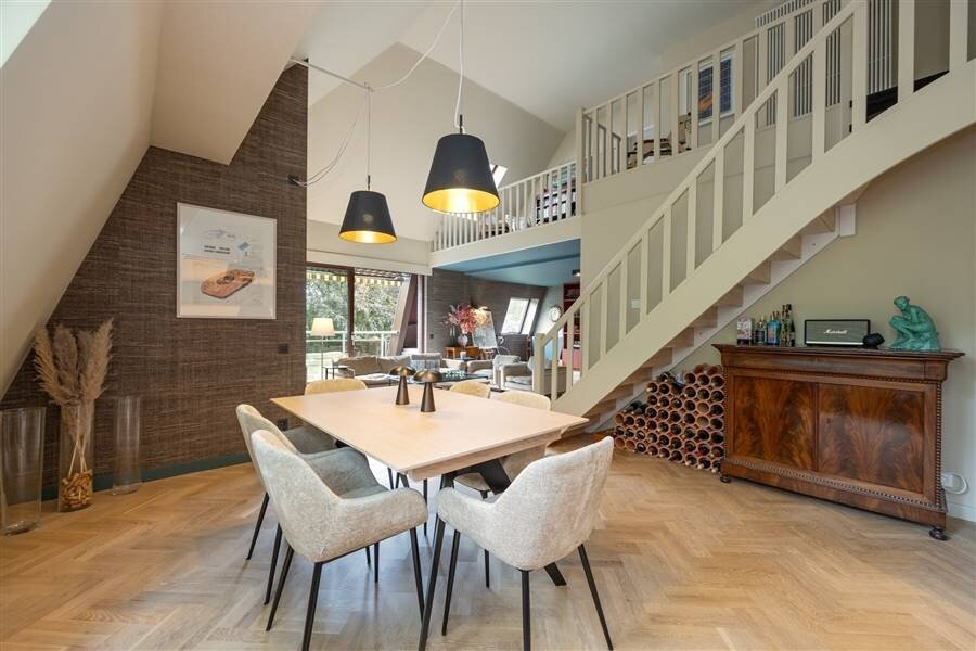 Accessible par l'ascenseur jusqu'au 3ème étage. Hall d'entrée avec vestiaire et toilettes. Grand salon avec hauts plafonds donnant sur une agréable terrasse, cheminée fonctionnelle et mezzanine, belle cuisine entièrement équipée avec four à vapeur AEG, tiroir sous vide, four, lave-vaisselle et cuisinière à induction donnant sur la salle à manger, grand espace bureau avec terrasse ou salle à manger séparée/chambre supplémentaire, chambre, rangement/buanderie avec lave-linge et sèche-linge MIELE à prendre en charge.