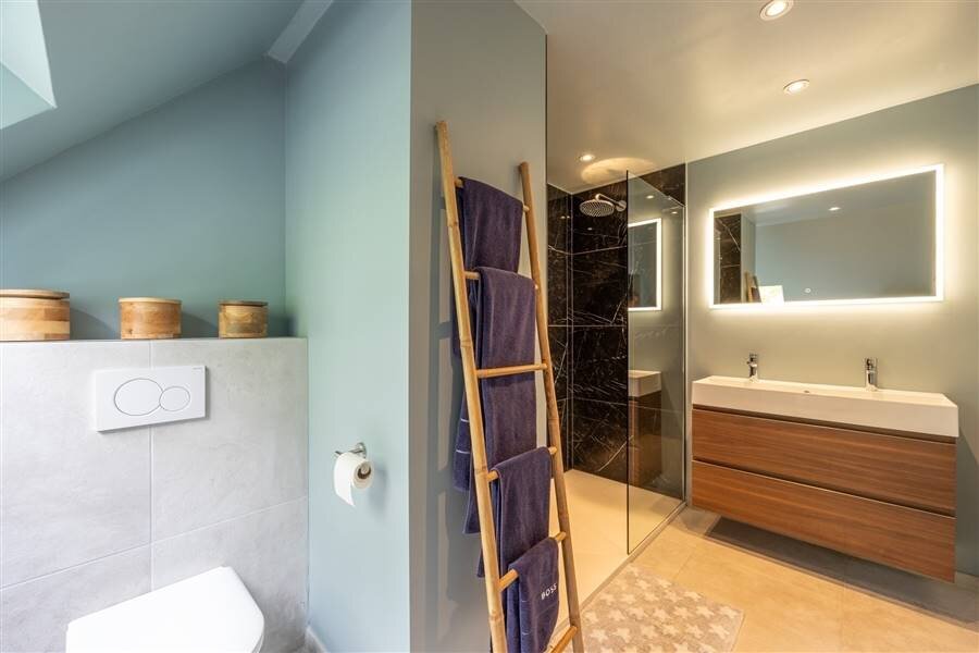 Par l'escalier, on accède au 4ème étage où se trouve la suite parentale avec salle de bains et dressing. Salle de douche avec lavabo et WC.