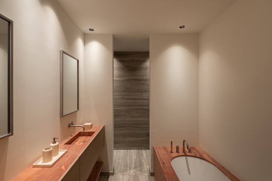 Het appartement beschikt over twee volwaardige slaapkamers, elk ontworpen als een private suite met een eigen dressing en een ensuite badkamer.