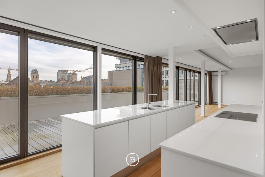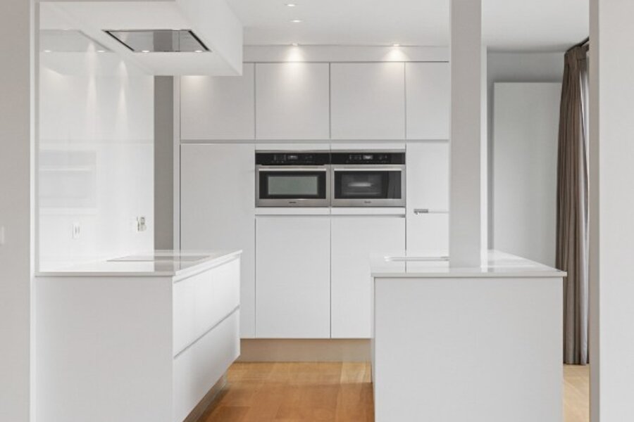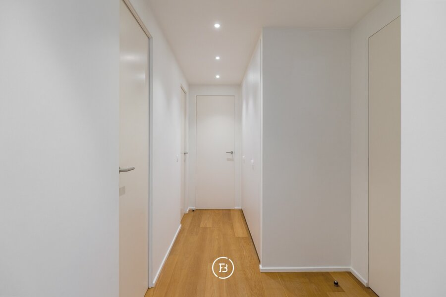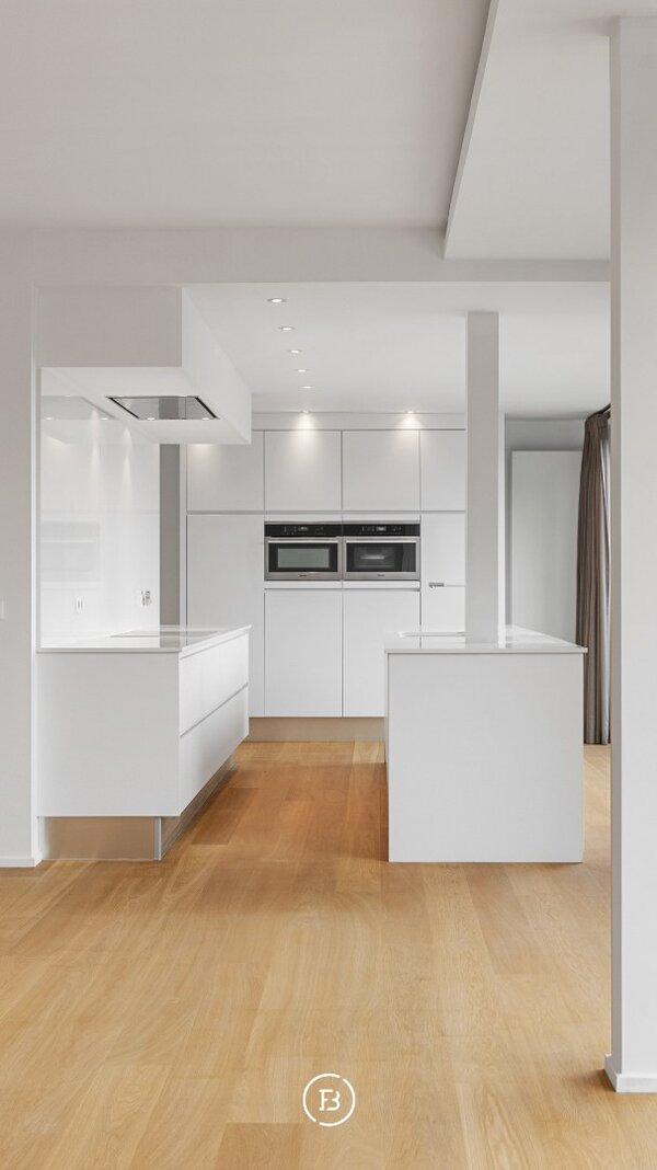 Le salon est généreux et lumineux, avec suffisamment d'espace pour plusieurs zones de vie sans sacrifier l'intimité. La cuisine ouverte s'intègre parfaitement dans l'ensemble et est finie dans un design épuré et intemporel avec des appareils encastrés de qualité. Deux espaces de rangement pratiques sont disponibles.