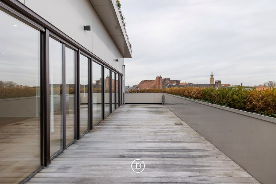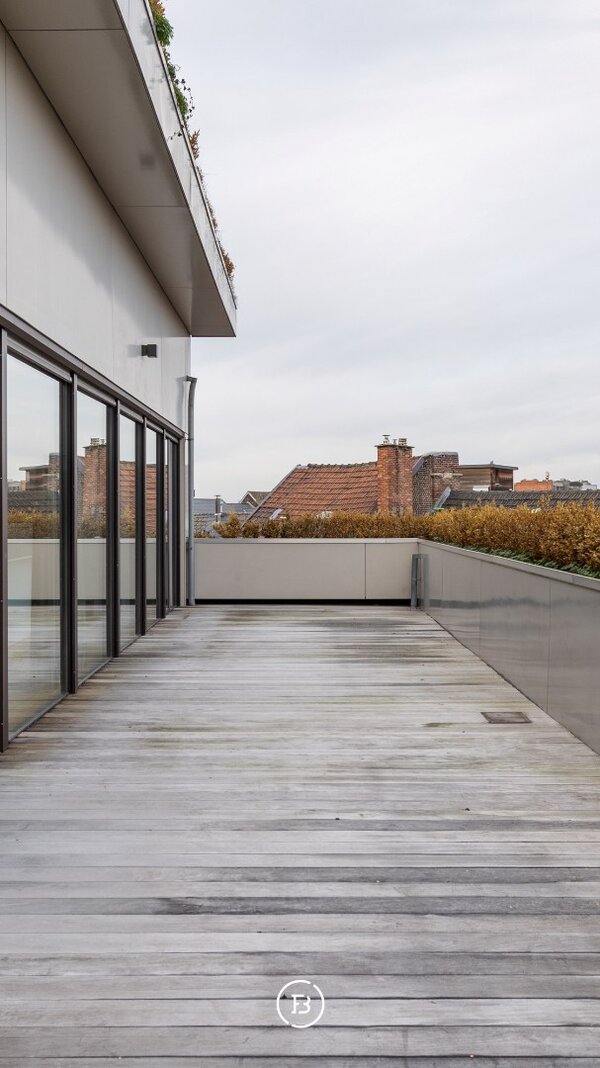 À l'extérieur, la grande terrasse de 50 m² est un véritable atout : un espace extérieur calme et privé qui prolonge l'intérieur, avec vue dégagée.