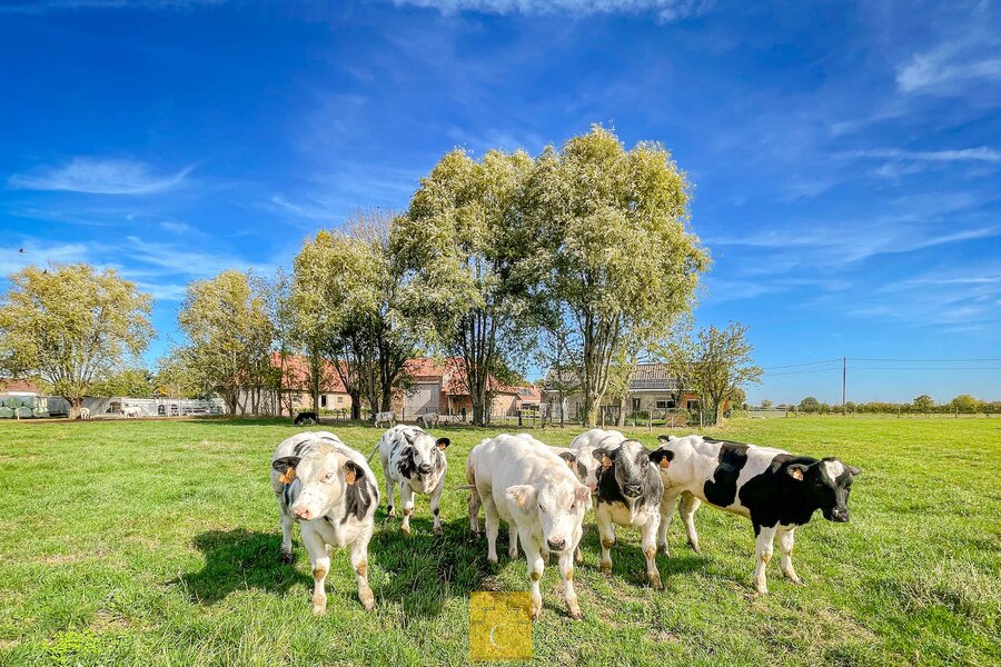 De loods werd T-vormig gebouwd en omvat een grote open ruimte tot in de nok (10,15 m x 23,63 m) met twee hoge poorten (3,84 m hoog en resp. 4,28 m en 5,14 m breed), een gedeelte met zoldering (4,53 m x 8,12 m), een apart toegankelijk stal (9,34 m x 11,8 m) deels met hooizolder en twee schuifpoorten, en een overdekt zonneterras. Aan het stal is er verharding richting de weilanden, met mestput. De woning werd basis afgewerkt en volledig gelijkvloers ingericht met inkomhal, leef- en eetruimte met kachel, keuken met ruime berging, badkamer met bad, lavabo en toilet, drie slaapkamers en een ruime wasruimte/berging. Aan de woning bevindt zich nog een stal die van buitenaf bereikbaar is.De woning beschikt verder over zonnepanelen, centrale verwarming op mazout en een privétuin met mooie zichten over de achterliggende weilanden. Een uitzonderlijke eigendom voor wie op zoek is naar een boerderij met ruime nieuwbouwloods, weiland en een woning met potentieel, rustig gelegen in Aartrijke. Alle informatie over de beschikbaarheid en voorwaarden worden ter plaatse meegegeven. Deze woning is onderhevig aan de renovatieverplichting van de Vlaamse overheid, wat voor de nieuwe eigenaar opportuniteiten biedt om de woning naar eigen smaak en comfortniveau te upgraden.