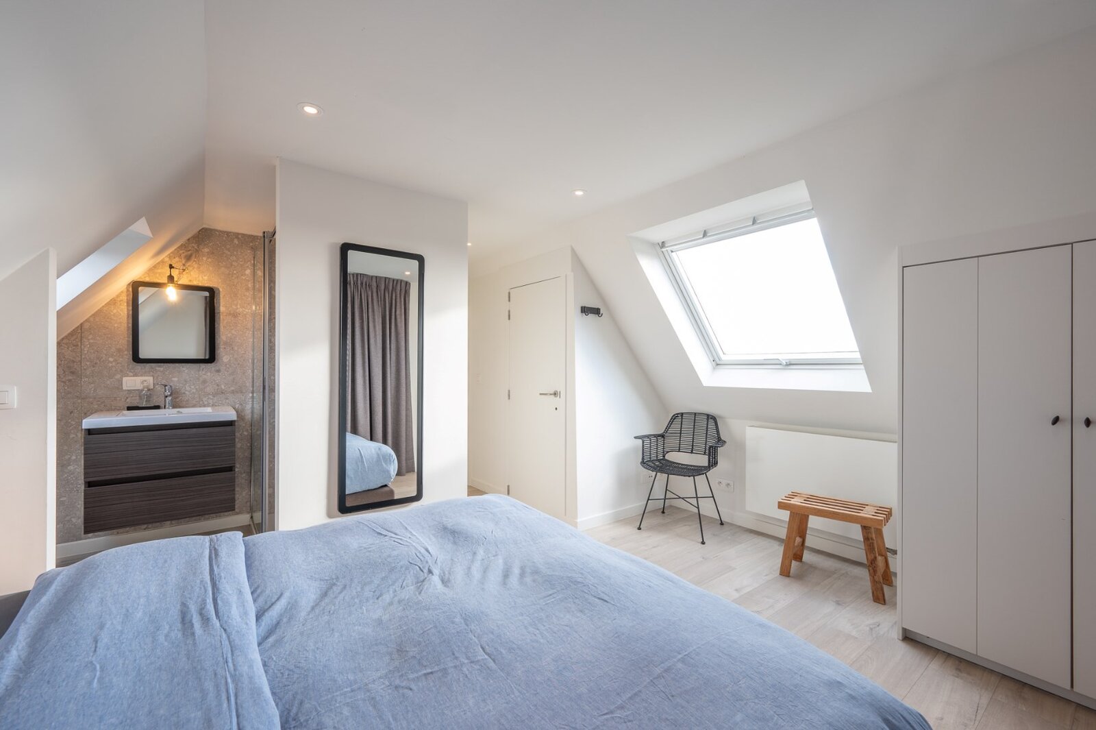 Une unité d'habitation entièrement séparée et aménagée avec goût comprenant un salon spacieux, une cuisine ouverte et une salle à manger, également avec vue sur les polders. À l'étage, il y a deux chambres à coucher complètes, chacune avec sa propre salle de douche et toilettes.