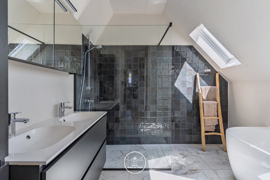 Op de eerste verdieping bevinden zich drie volwaardige slaapkamers, een open bureauruimte en een badkamer met zowel ligbad als inloopdouche.