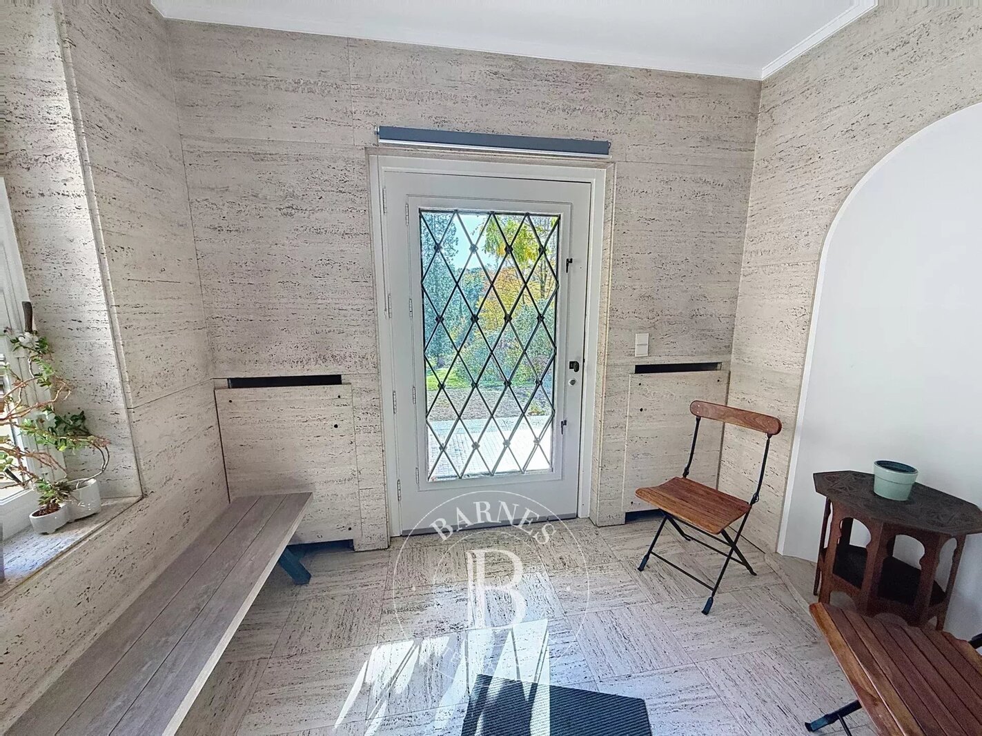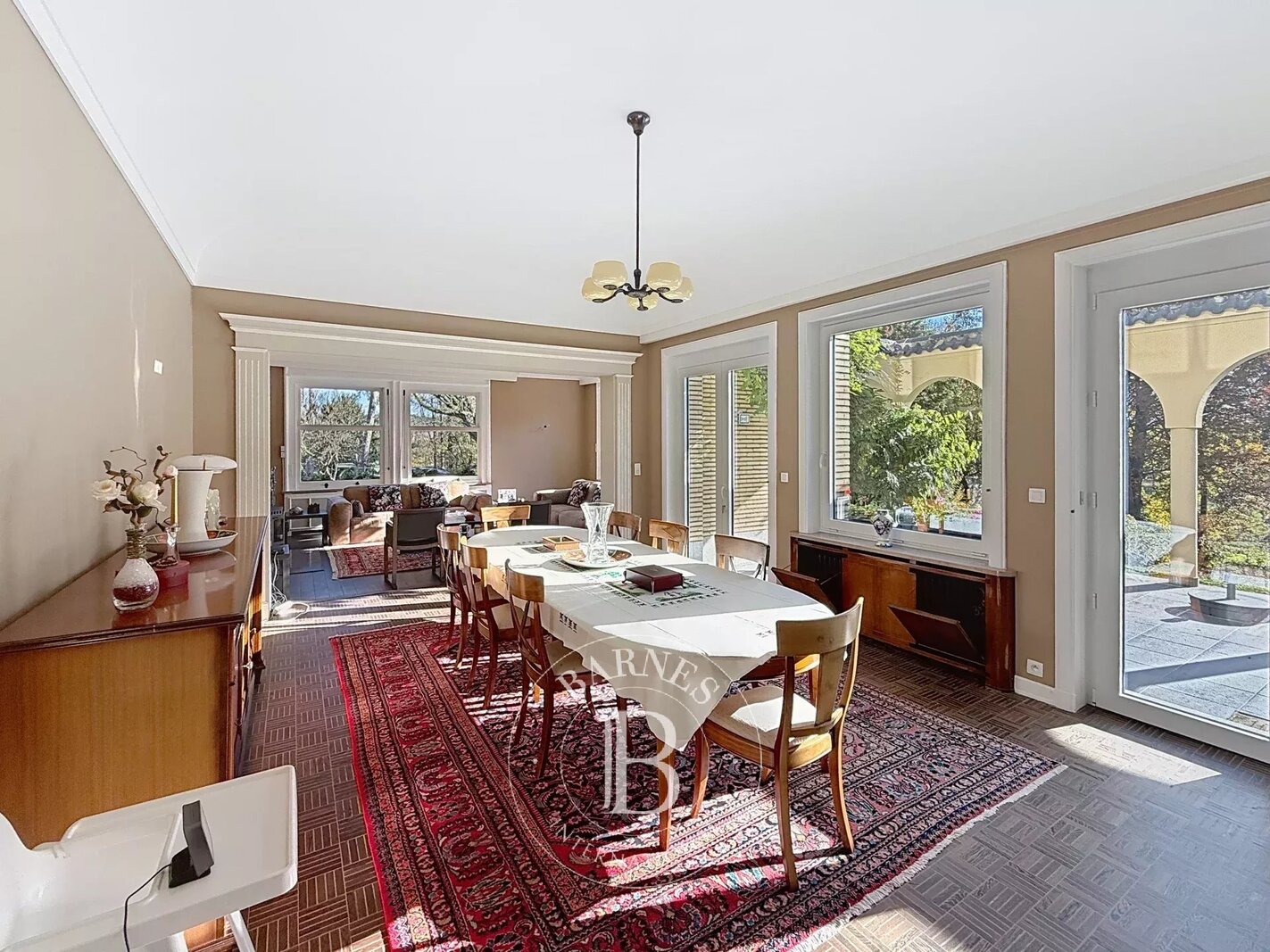 Ce manoir de 1930 au style Art déco, rénové en 2015, séduit par ses volumes généreux et sa luminosité exceptionnelle. Le rez-de-chaussée comprend un vaste hall lumineux, une grande salle à manger et deux salons dont un salon de 60 m², avec coin bibliothèque. La cuisine de style d’époque avec office et l’espace pour invités complètent ce niveau.
