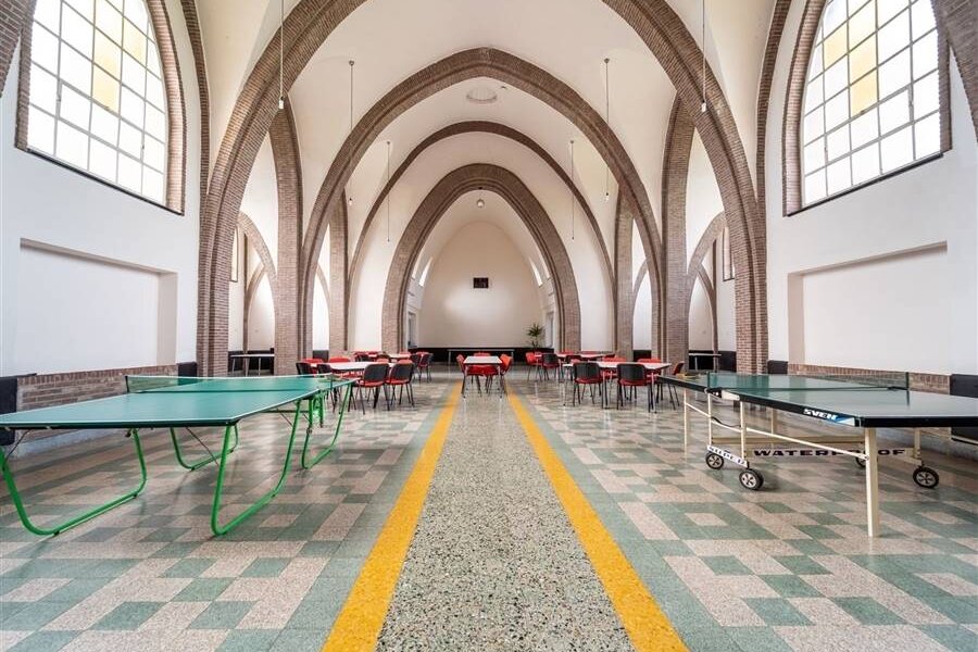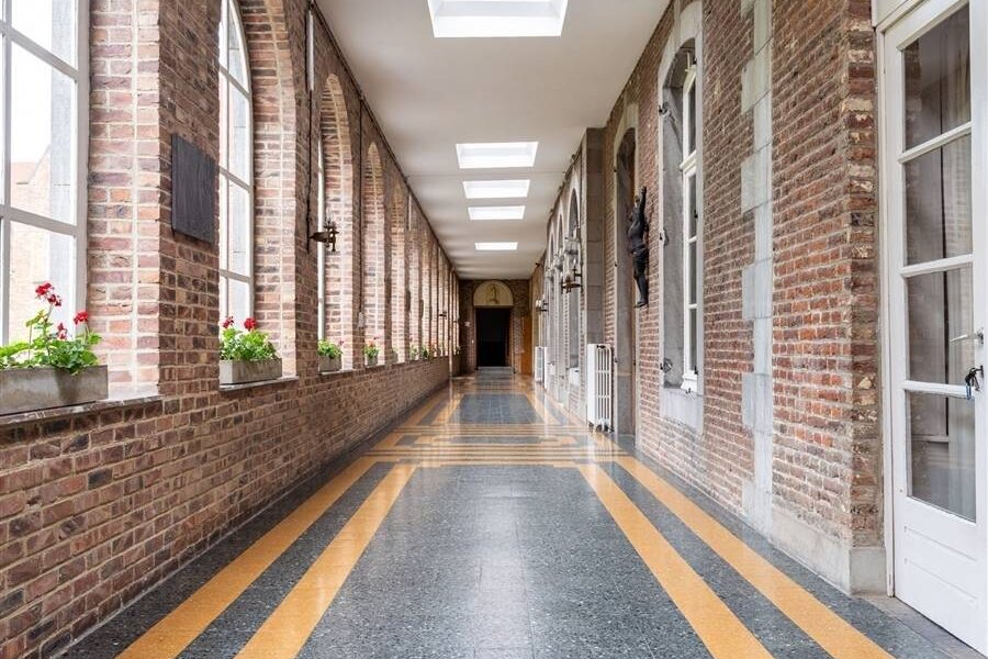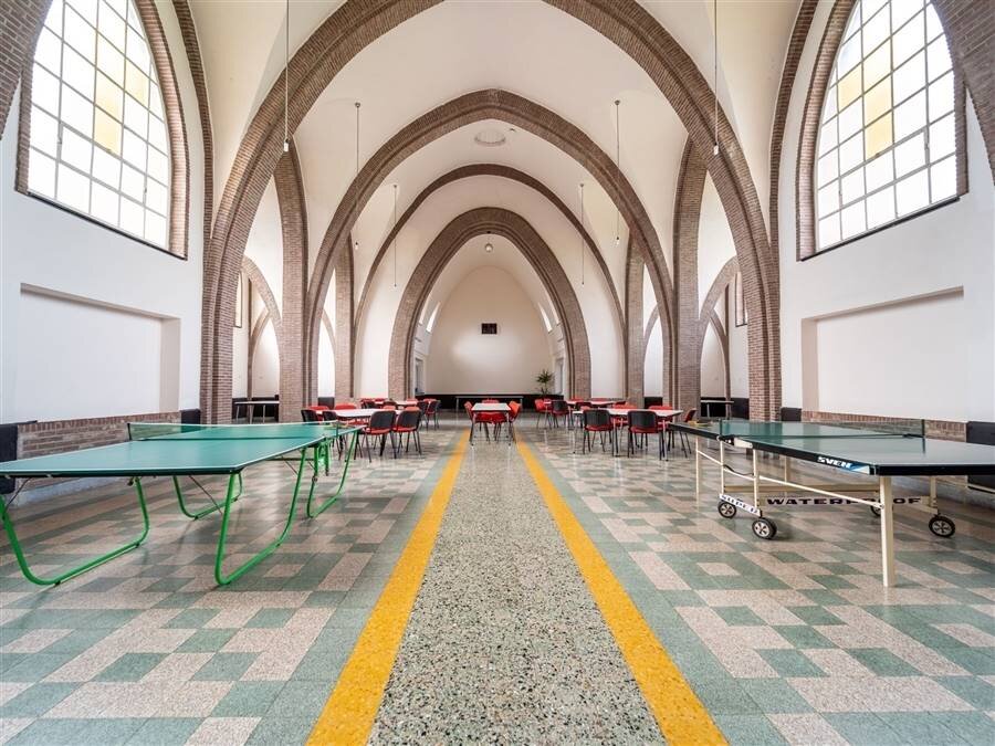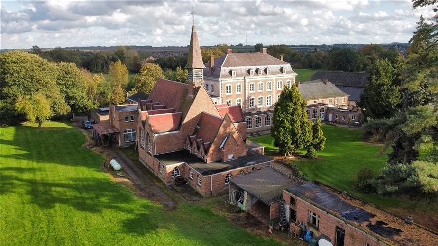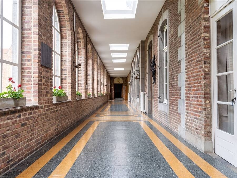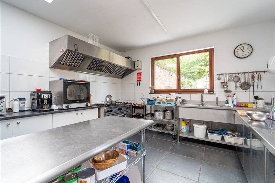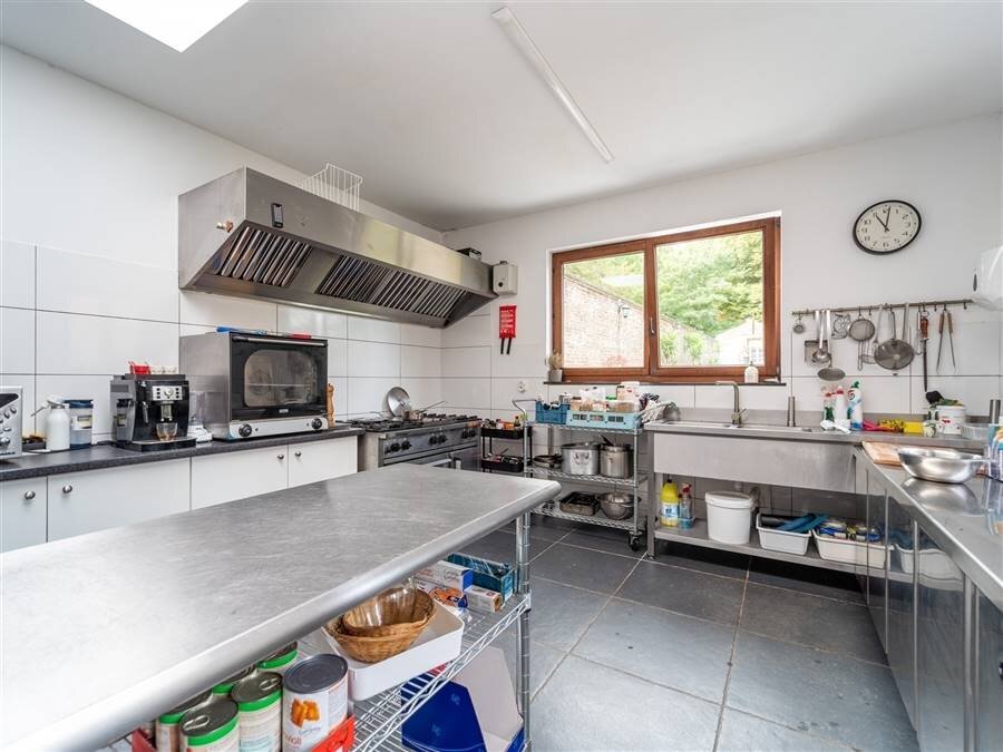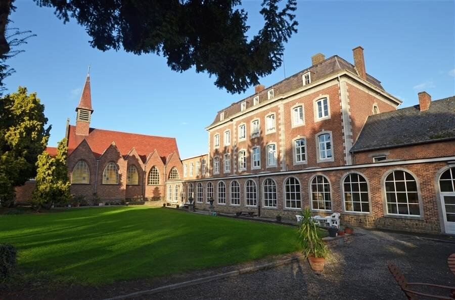 Achteraan bevindt zich een kapel die momenteel dienst doet als polyvalente ruimte en een professionele keuken.
