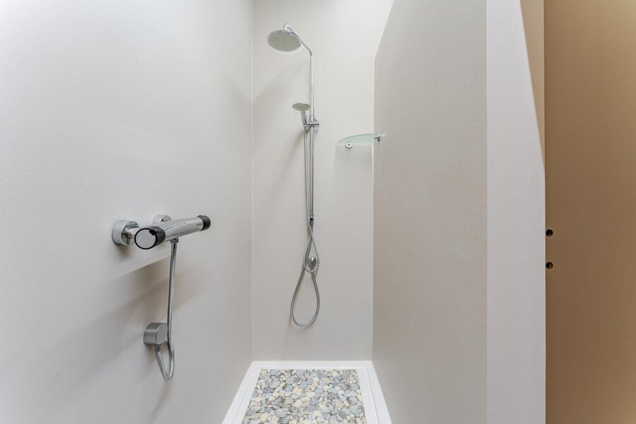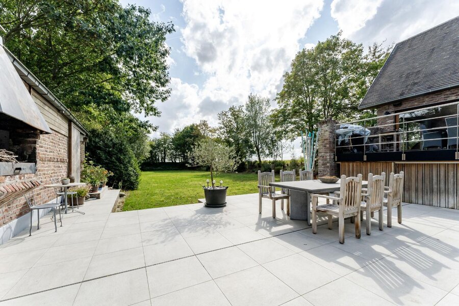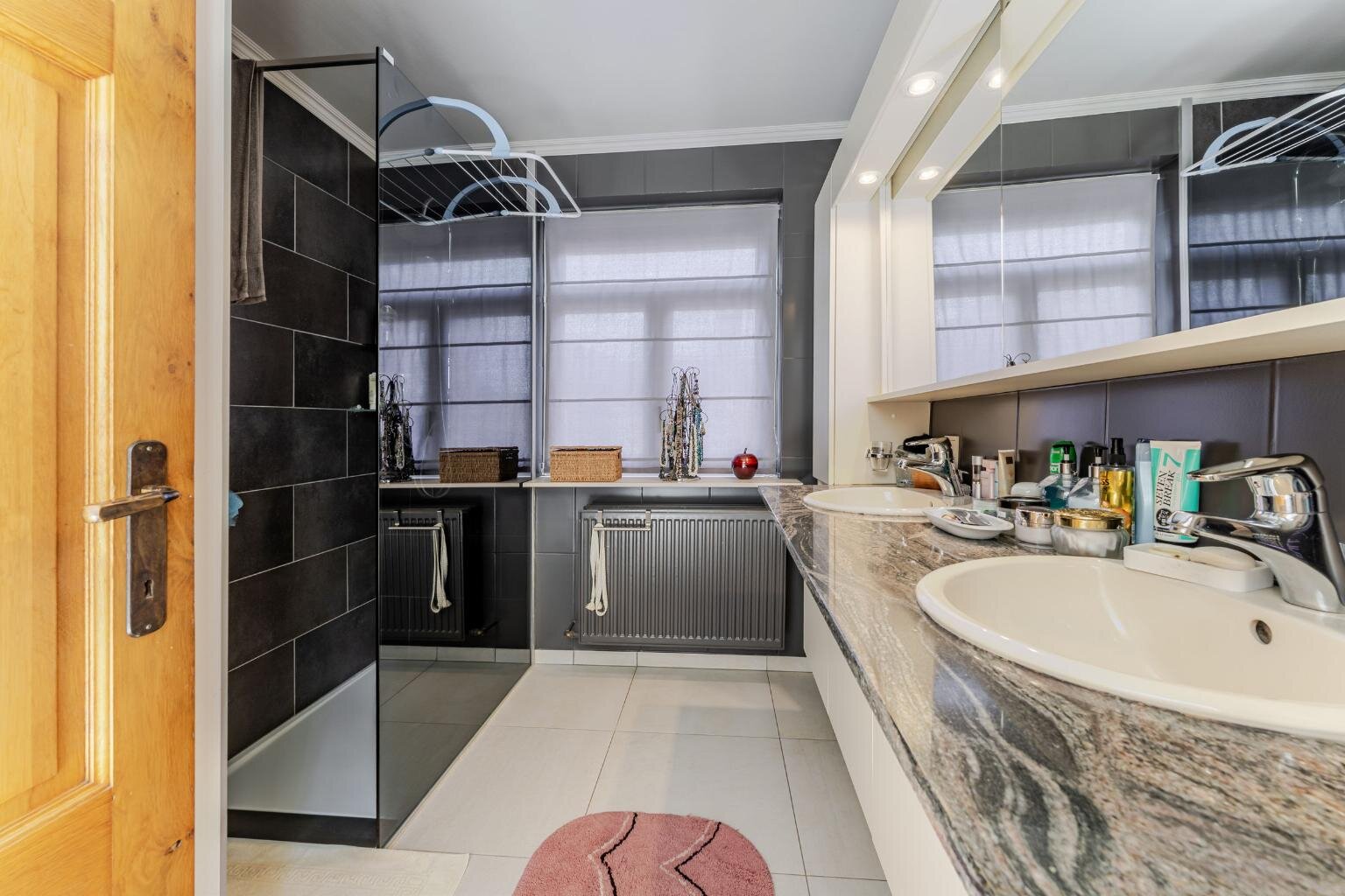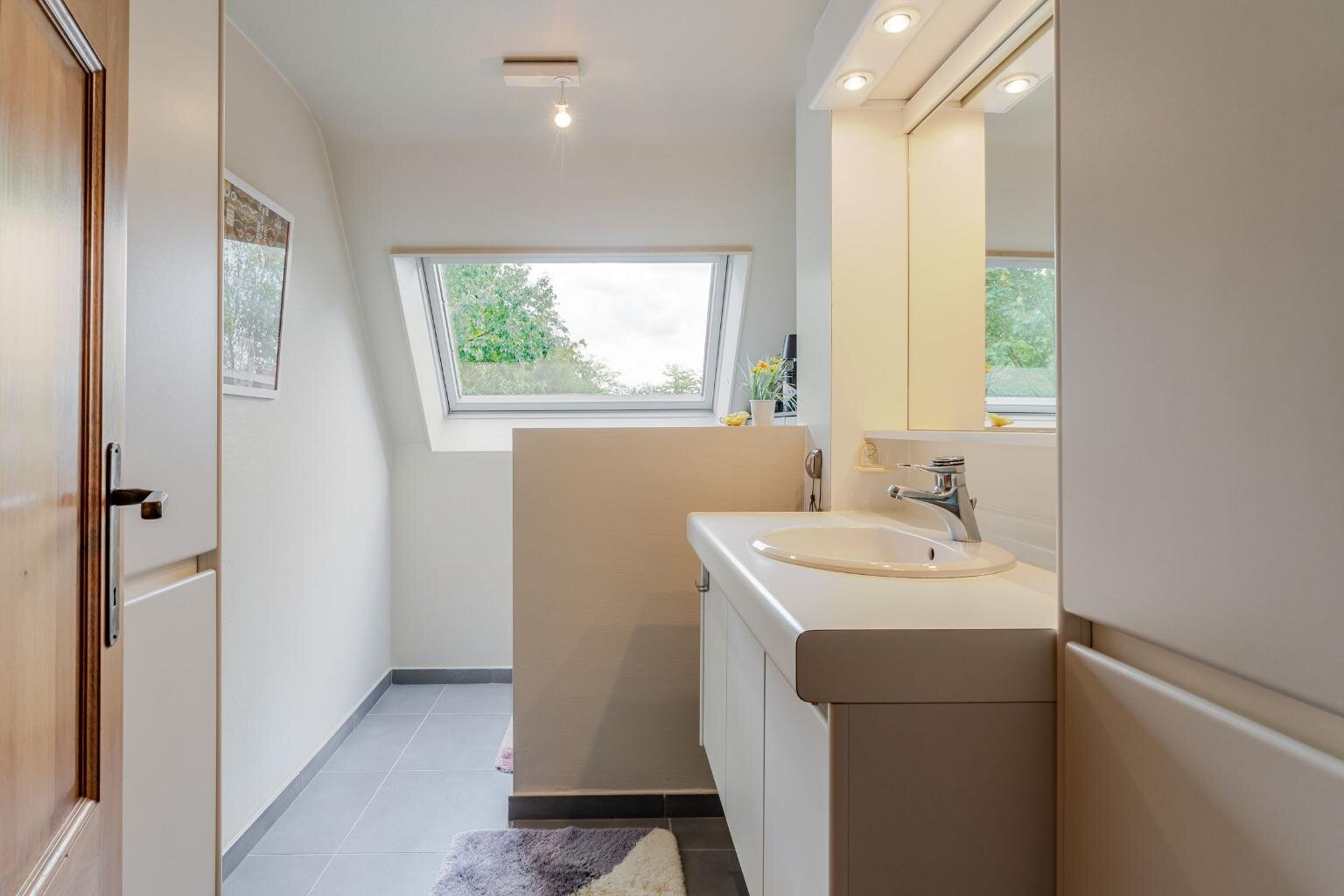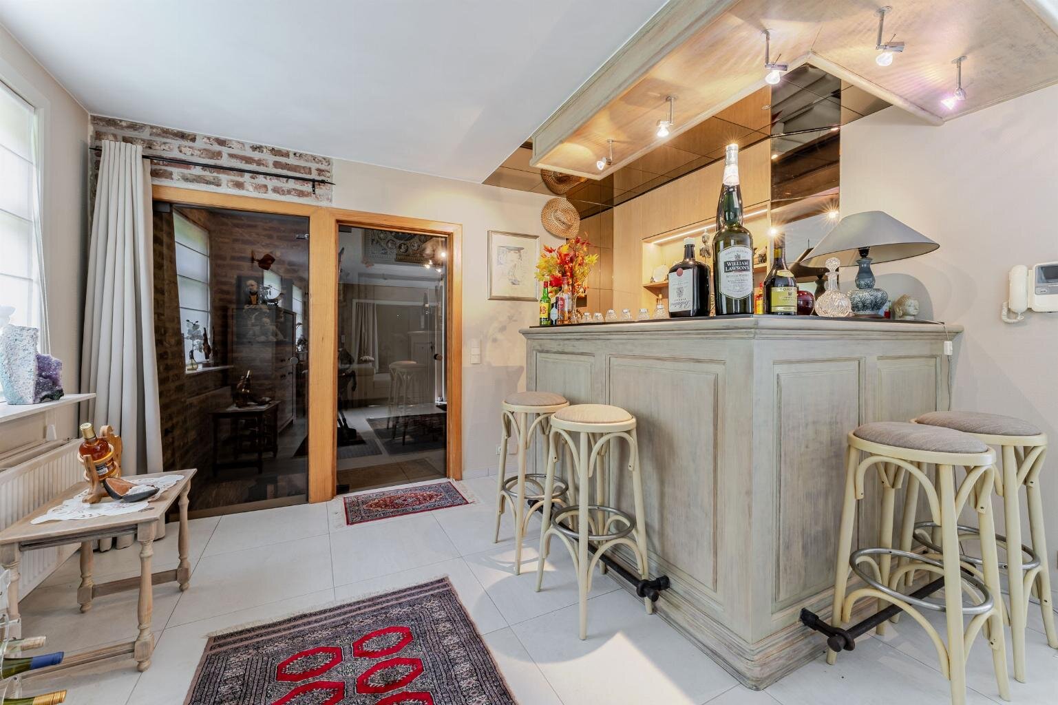 En entrant, vous trouverez un hall d'entrée accueillant avec toilettes pour invités. Le salon lumineux avec cheminée et un coin salon supplémentaire créent des moments conviviaux avec la famille et les amis. La cuisine s'ouvre parfaitement sur la buanderie pratique. Au rez-de-chaussée, il y a aussi une salle de bains et une magnifique piscine intérieure chauffée, entièrement rénovée il y a quatre ans et équipée de sa propre douche et toilettes.