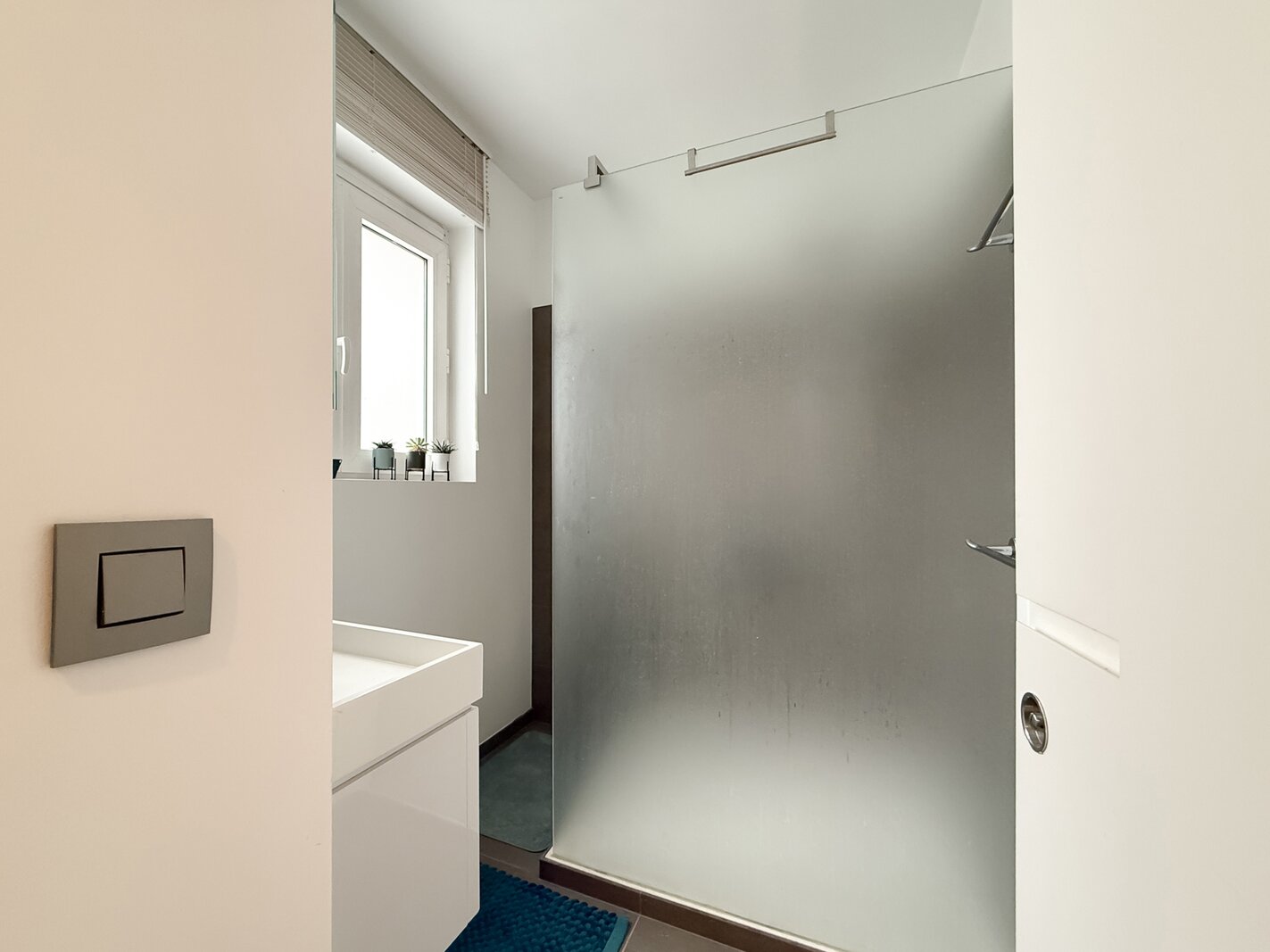 Il se compose d’un hall d’entrée avec toilettes séparées, d’un séjour lumineux avec cuisine ouverte et agréable vue sur la mer. La chambre spacieuse s’ouvre sur une terrasse paisible à l’arrière, idéale pour profiter de moments de détente. L’appartement dispose en outre d’une salle de douche moderne ainsi que d’une cave privative.
