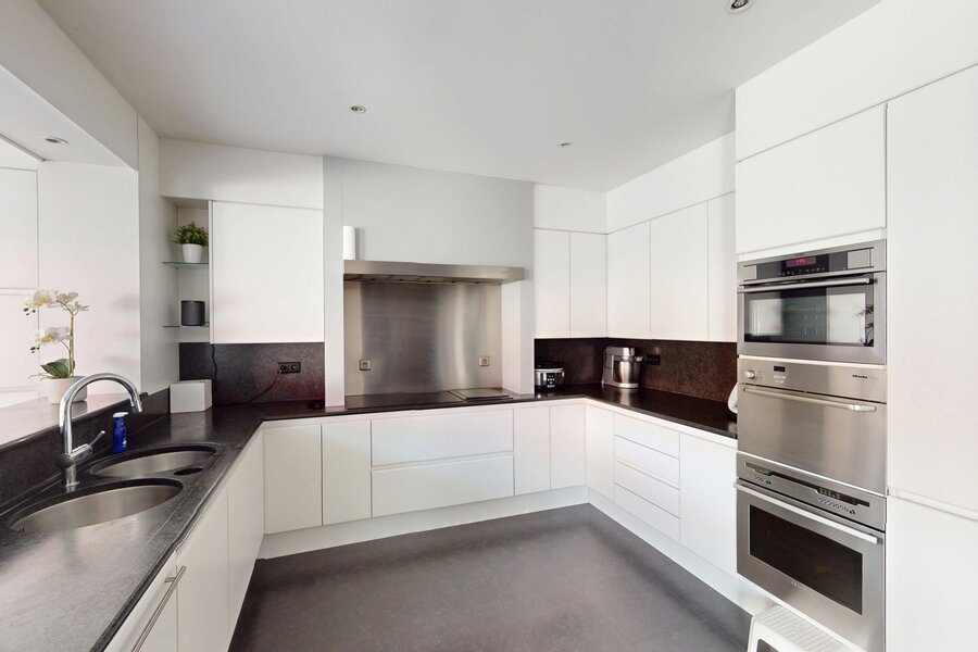 Cuisine équipée haut standing (Miele, surfaces en granit, électros encastrés).