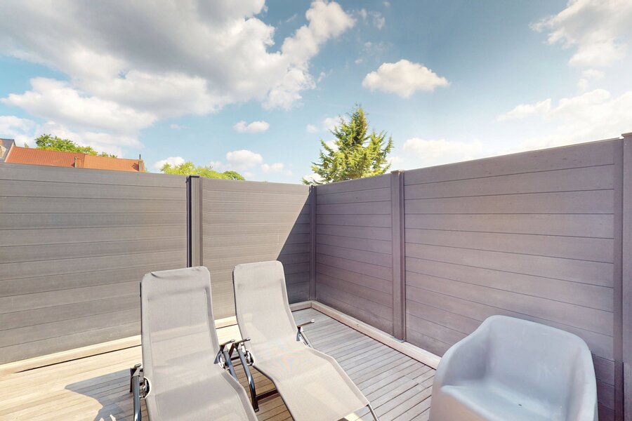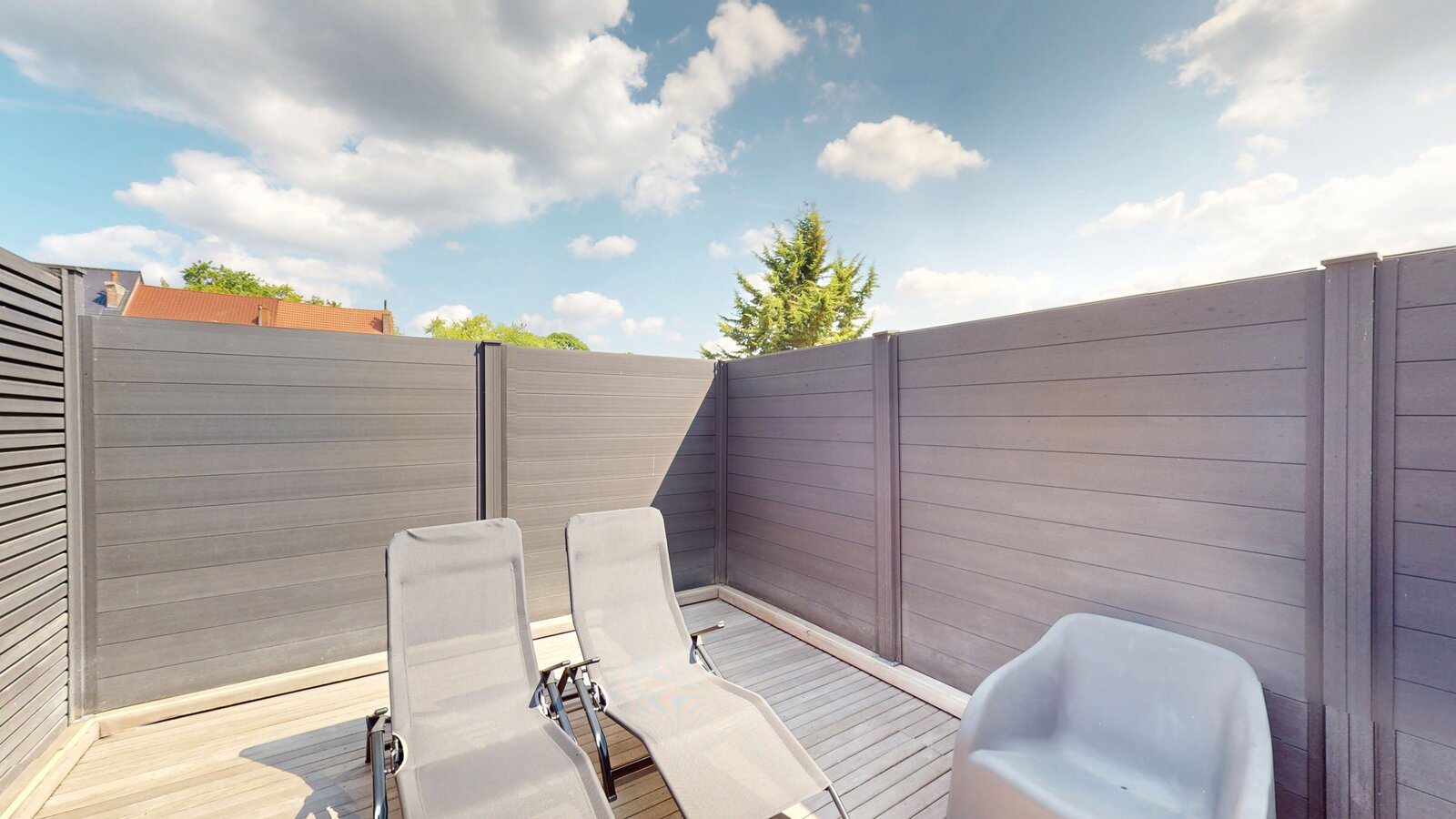 Terrasse intimiste et espace détente, à l’abri des regards.