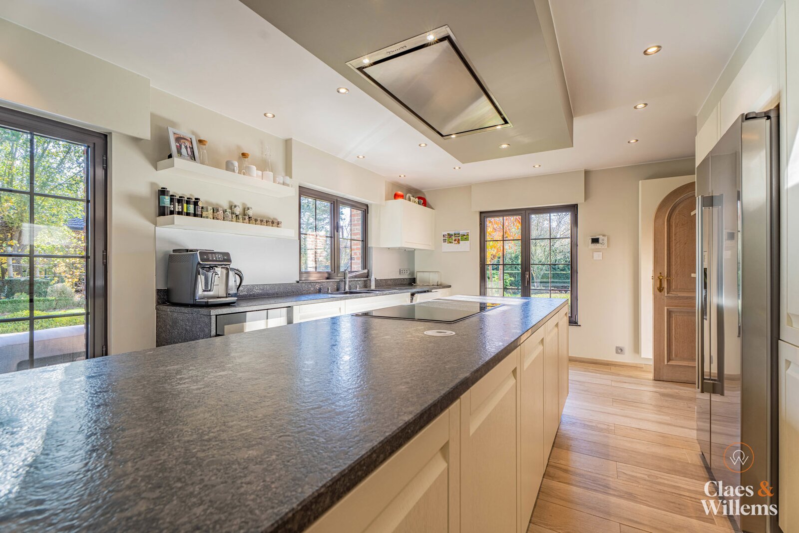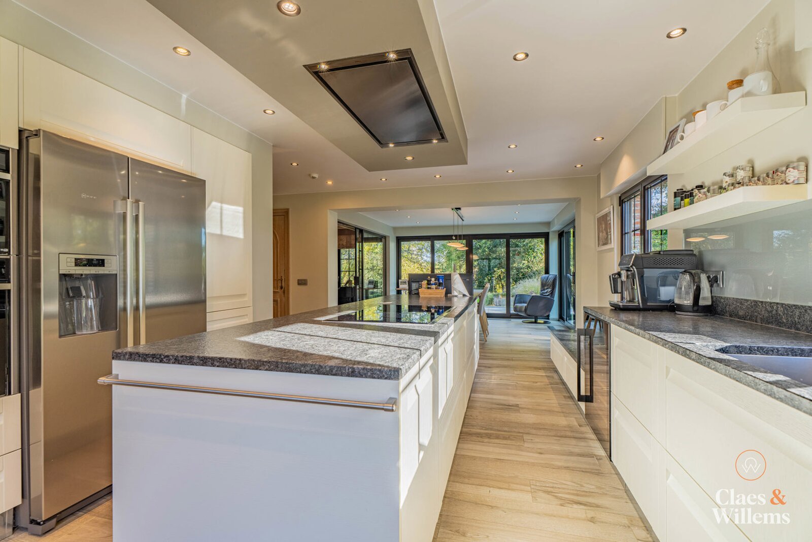 En entrant dans la maison, vous accédez à un hall d’entrée lumineux et spacieux avec toilette invités. Le séjour convivial avec grande salle à manger offre une vue sur le jardin et communique avec une cuisine séparée entièrement équipée comprenant un second espace repas – parfait pour les familles recherchant espace et confort.