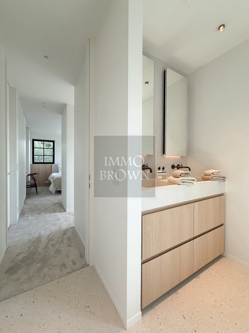 La villa comprend en outre un garage intégré ainsi qu’une buanderie séparée avec accès direct au jardin, offrant un confort d’utilisation au quotidien.