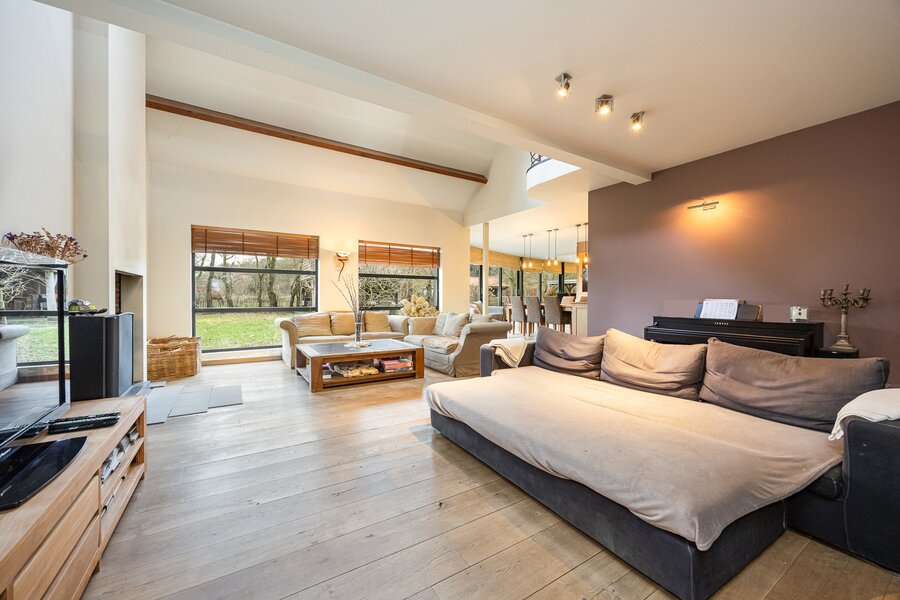 De woning combineert authentieke elementen met hedendaags comfort en is onder andere geschikt voor paardenliefhebbers.