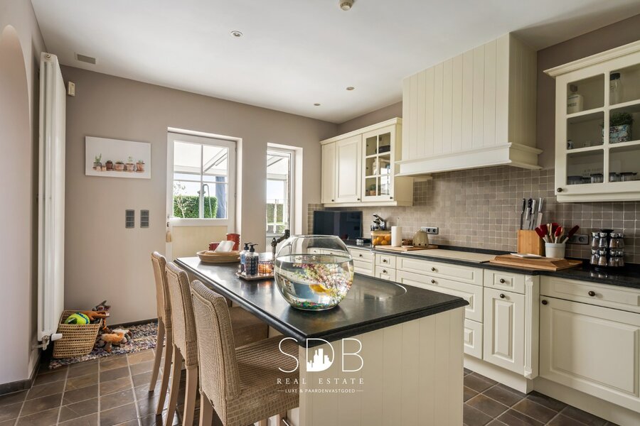 De prachtige landelijke keuken is voorzien in al haar faciliteiten die functionaliteit en elegantie perfect combineert.
