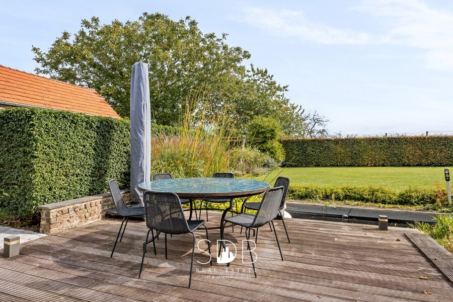 Deze eigendom typeert zich als een betoverend geheel, de landelijke charme binnenshuis sluit zo mooi aan met de serene buitenlook van de hoeve. Bijkomend met de groene, rustige buitenomgeving.