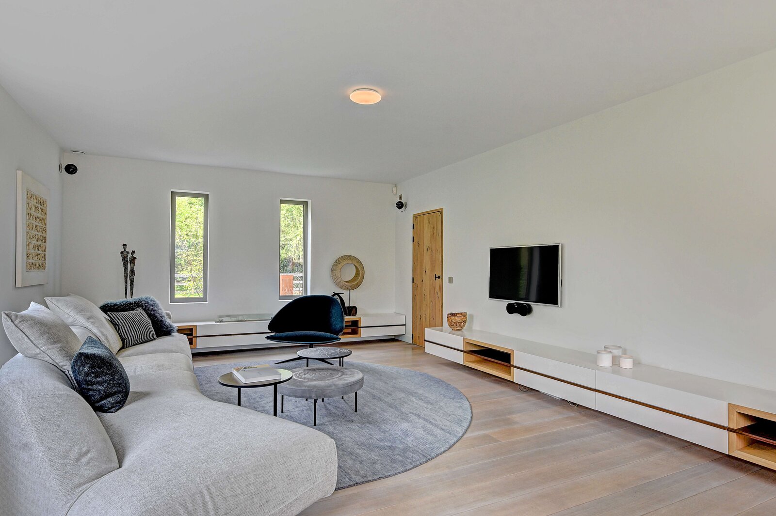 Rez-de-chaussée: Spacieux hall d'entrée avec WC séparé. Agréable séjour lumineux composé d'un coin salon, salle à manger avec vue sur le jardin et cuisine ouverte joliment meublée et équipée de tous les appareils nécessaires avec un spacieux débarras attenant avec placards intégrés. Deuxième pièce de rangement avec porte d'accès par le côté de la maison. Bureau. Agréable jardin clos avec belle terrasse et pièce d'eau. Garage spacieux avec espace de rangement à l'arrière.