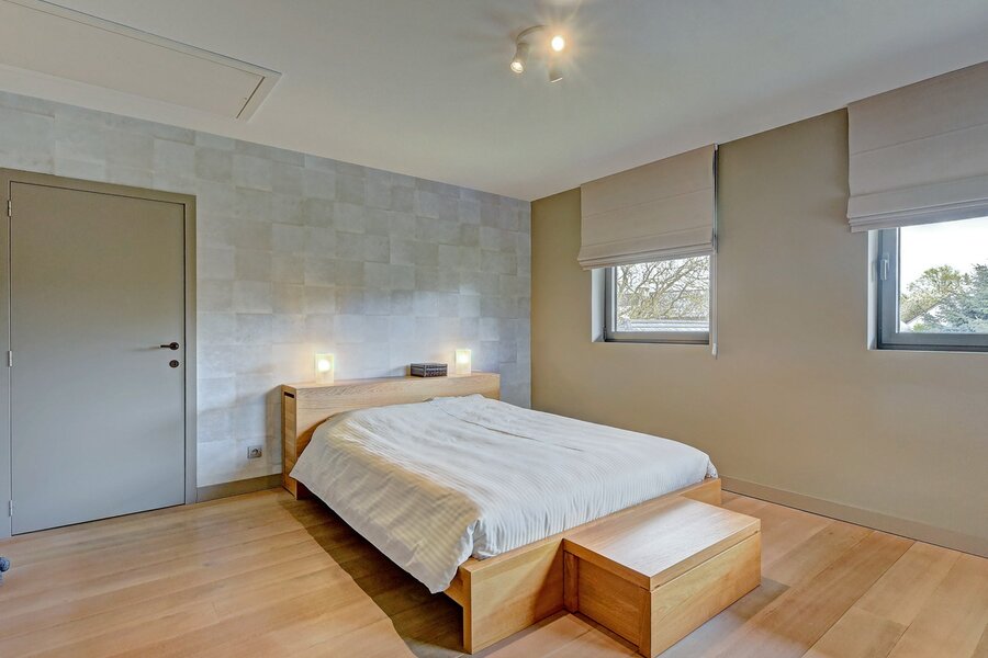 Premier étage: Par le hall de nuit on accède aux 3 chambres spacieuses dont 1 avec dressing et salle de bain en suite. Il y a également une buanderie et une deuxième salle de bain avec WC séparé.