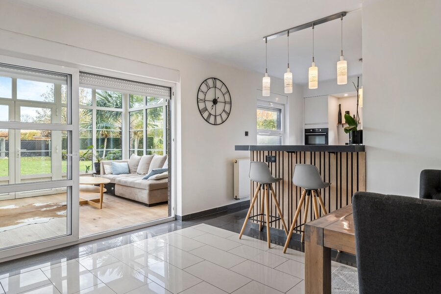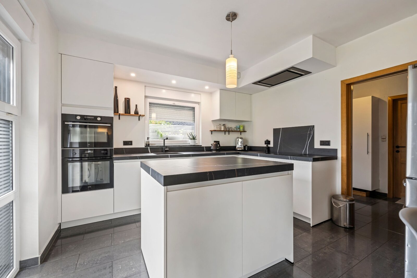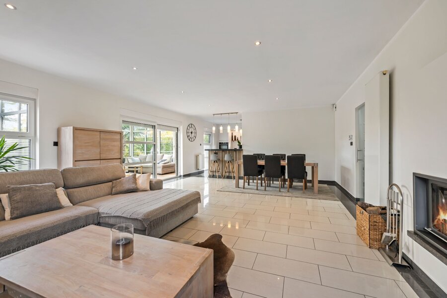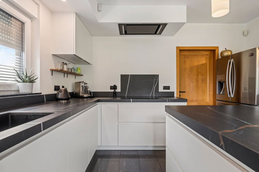 Deze uitzonderlijke villa combineert moderne luxe met een uitstekende ligging en biedt alles wat u zich kunt wensen voor comfortabel en stijlvol wonen. Bij het betreden van de woning wordt u verwelkomd door een ruime inkomhal die leidt naar de lichtrijke leefruimte met grote raampartijen, waar binnen en buiten naadloos in elkaar overvloeien. De open, volledig ingerichte keuken met hoogwaardige toestellen vormt het hart van de woning en is ideaal voor wie houdt van koken en gezellig samenzijn.