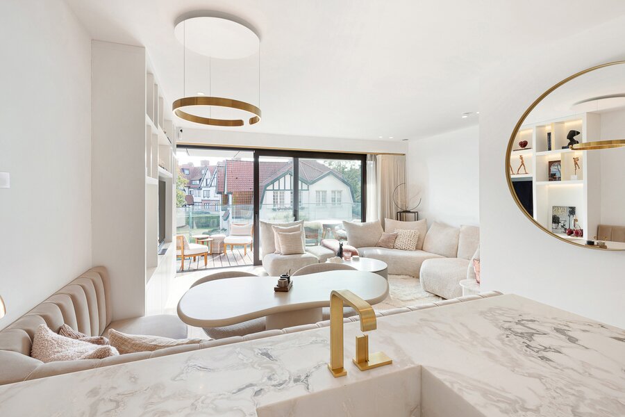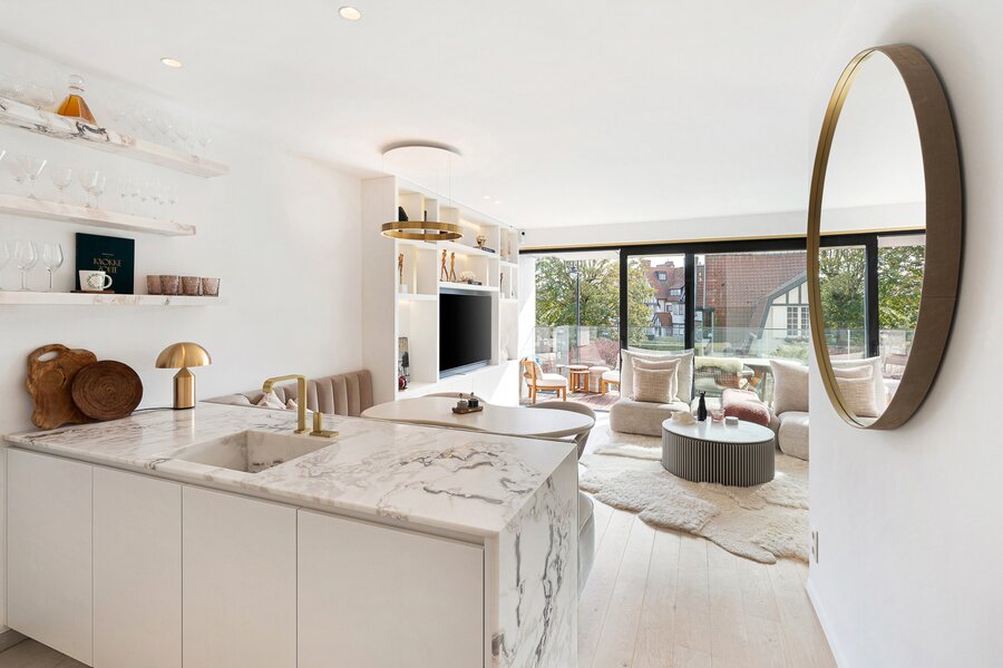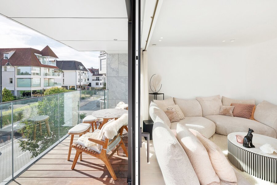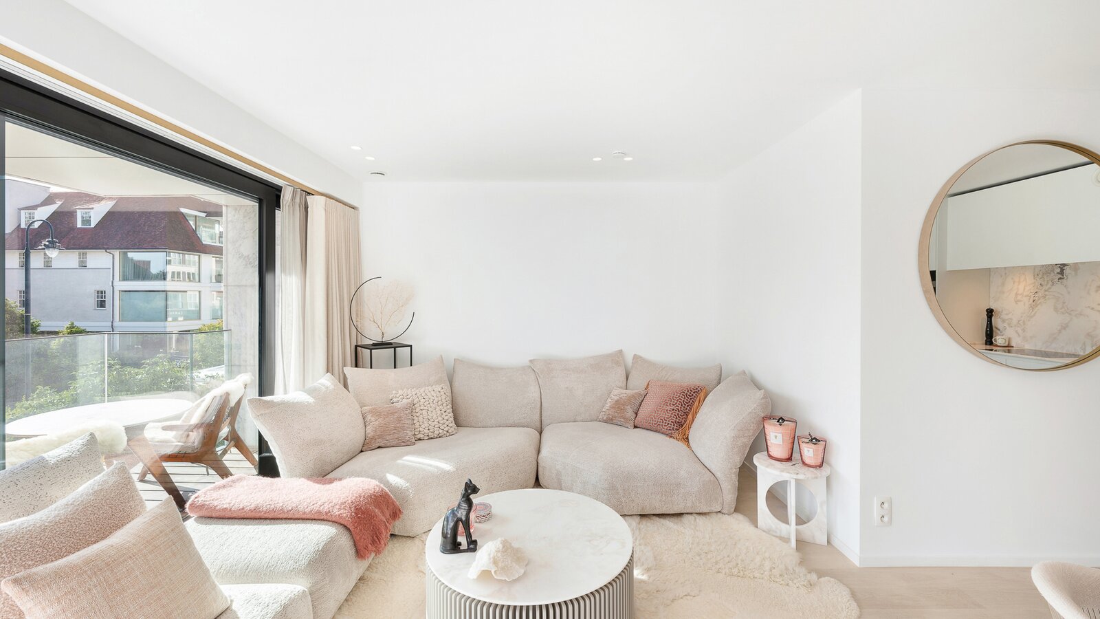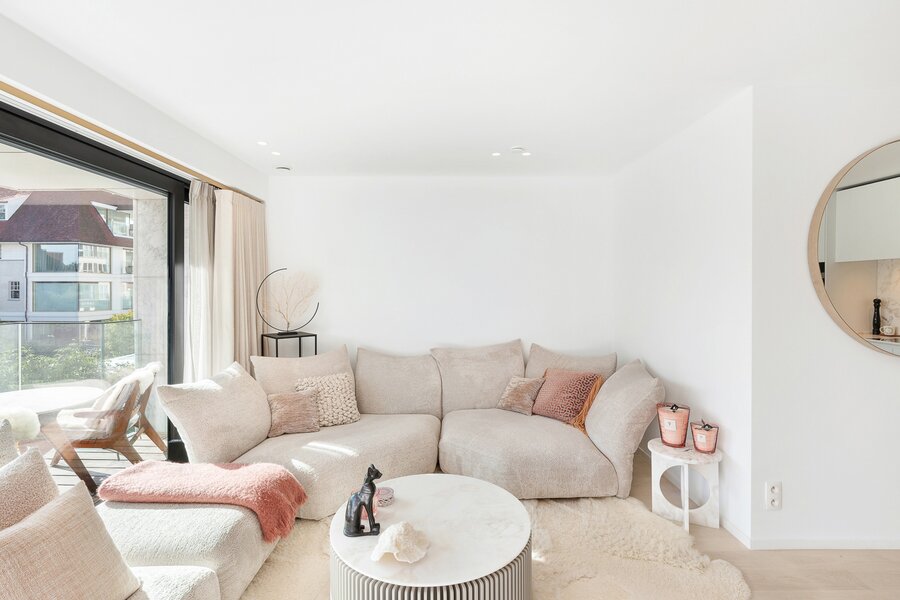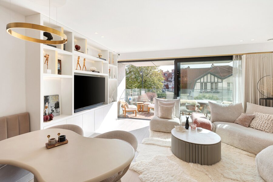 Magnifique appartement dans une résidence récente sur un emplacement triple A au coeur du Zoute, exposé plein sud et avec une belle vue dégagée sur les villas. Composition : Hall d'entrée avec vestiaire et toilettes invités, séjour lumineux donnant sur la terrasse plein sud, coin repas et cuisine ouverte généreusement équipée (marbre blanc Oyster et appareils Miele). Chambre des maîtres avec salle de douche communicante (finie en marbre). Deuxième grande chambre avec salle de douche. Cave privative dans la résidence. Possibilité de reprendre le bail d’un garage spacieux en face de la résidence. Un appartement pour rêver... Contactez-nous pour une visite.