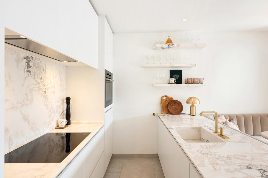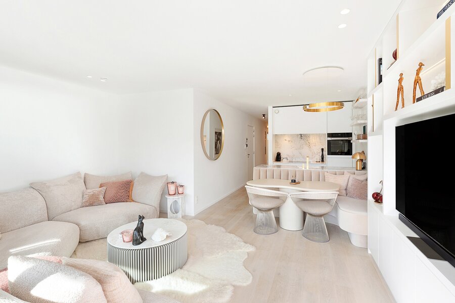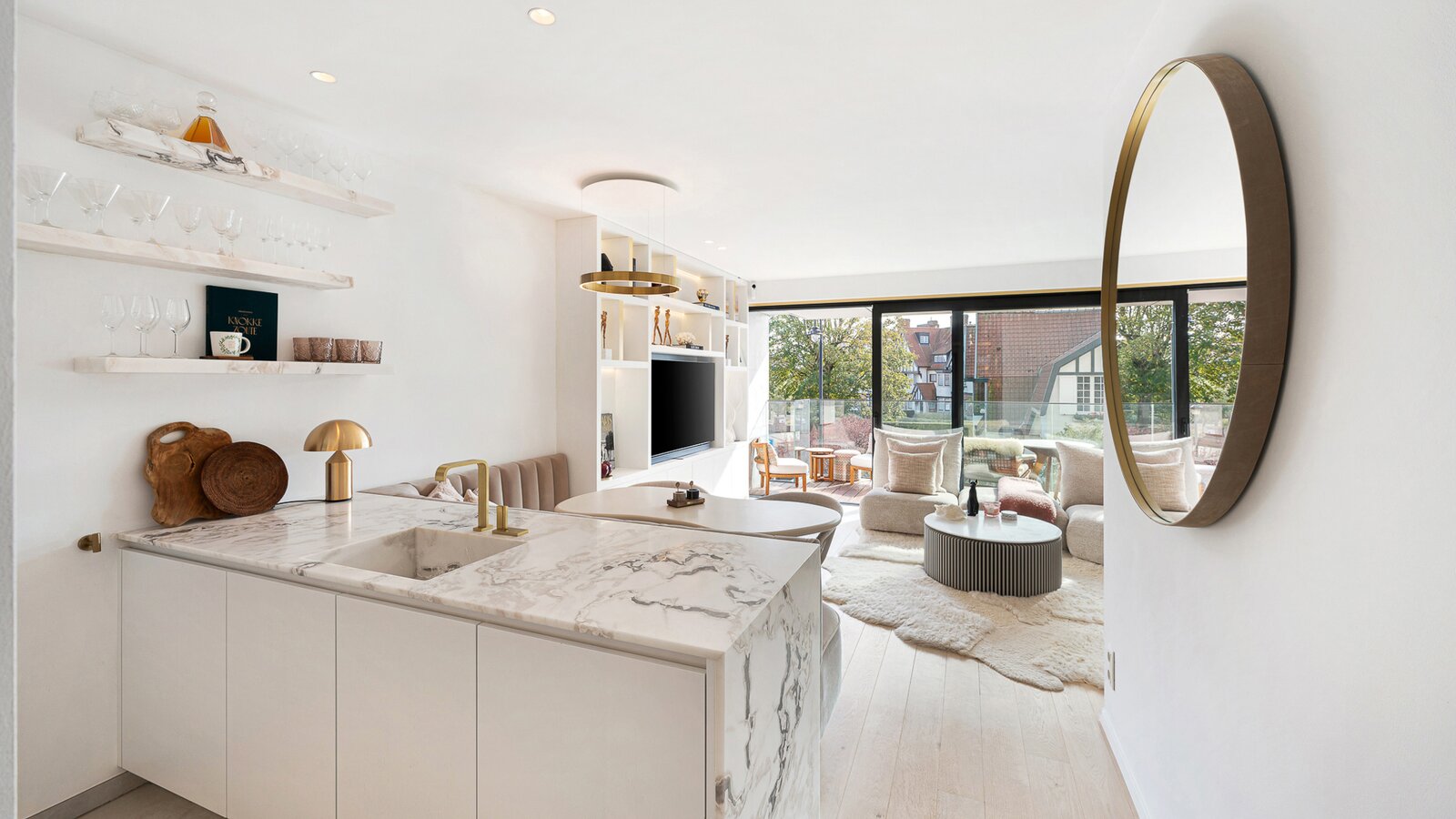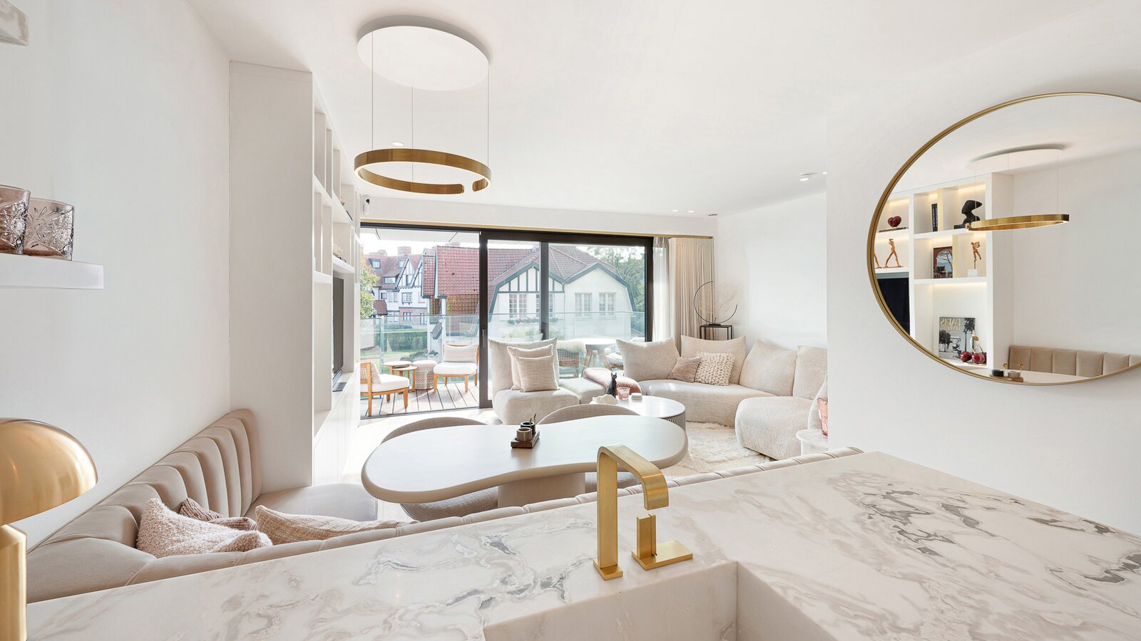 Magnifique appartement dans une résidence récente sur un emplacement triple A au coeur du Zoute, exposé plein sud et avec une belle vue dégagée sur les villas. Composition : Hall d'entrée avec vestiaire et toilettes invités, séjour lumineux donnant sur la terrasse plein sud, coin repas et cuisine ouverte généreusement équipée (marbre blanc Oyster et appareils Miele). Chambre des maîtres avec salle de douche communicante (finie en marbre). Deuxième grande chambre avec salle de douche. Cave privative dans la résidence. Possibilité de reprendre le bail d’un garage spacieux en face de la résidence. Un appartement pour rêver... Contactez-nous pour une visite.