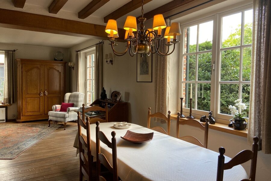 - Gezellige en lichtrijke leefruimte met zithoek, eetplaats en extra hoek, allemaal in connectie met de tuin