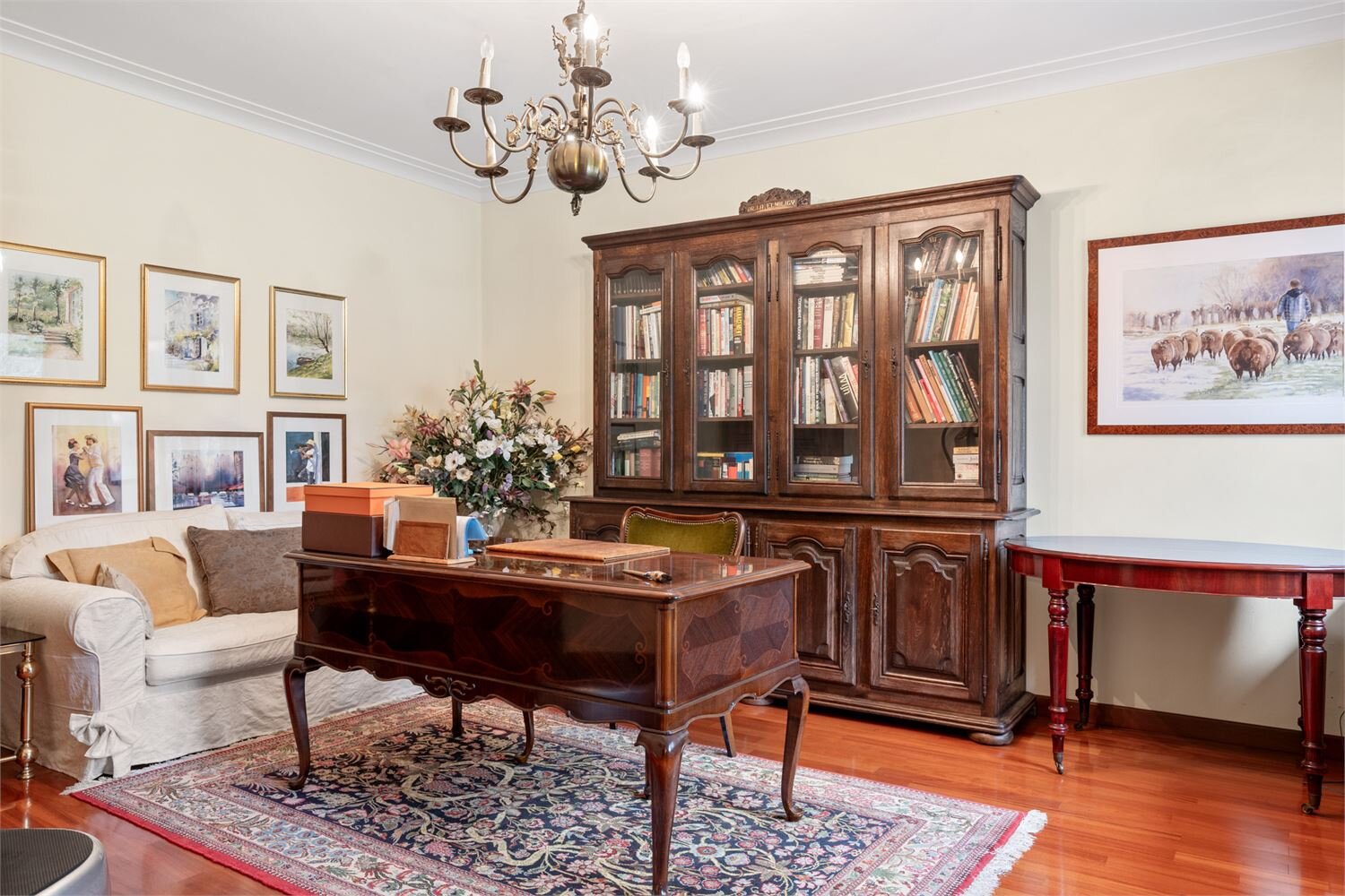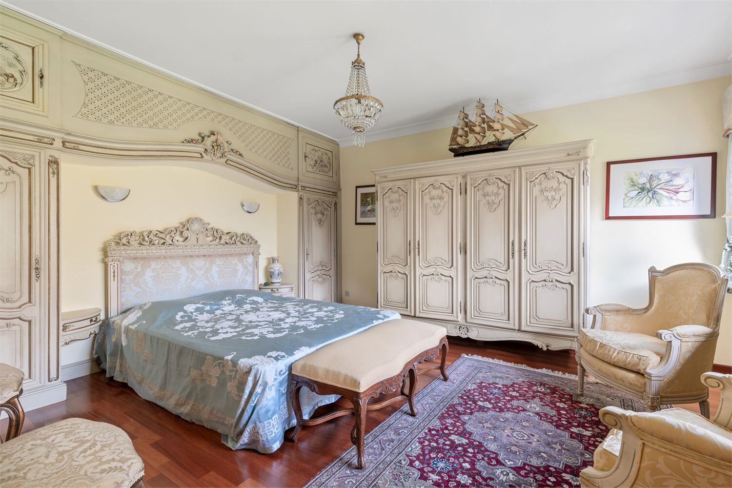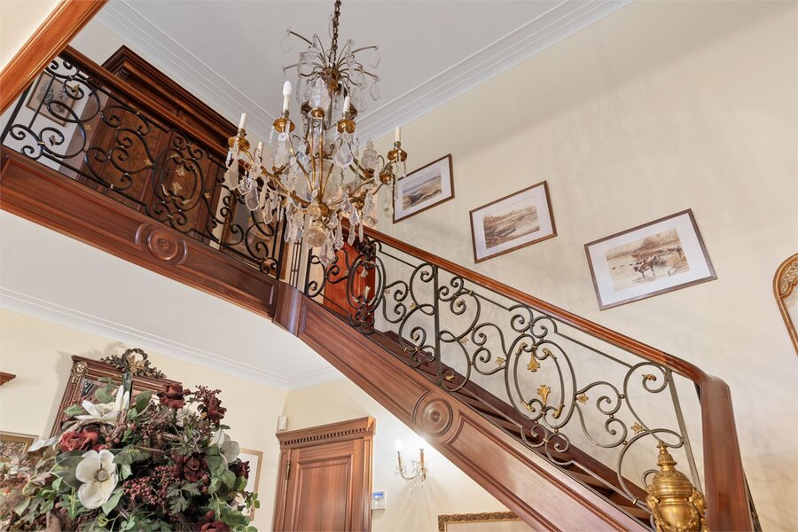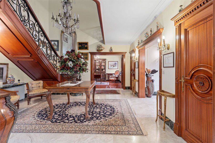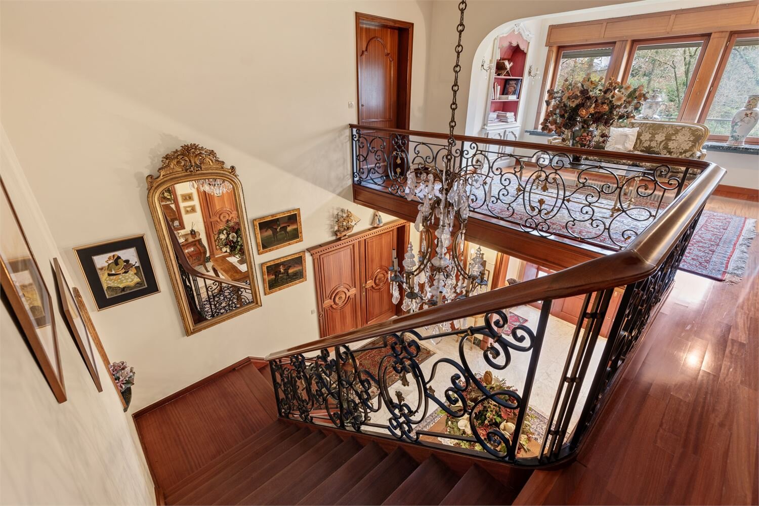 De imposante villa heeft een bewoonbare oppervlakte van 453 m² en karakteriseert zich met een unieke bouwstijl, klassieke gevels en elegante details. Op de gelijkvloerse verdieping bevinden zich een royale inkomhal, ruime woonkamer, eetkamer, keuken, bureau en dubbele garage. De eerste verdieping telt vijf slaapkamers, drie badkamers en een indrukwekkende trappenhal.