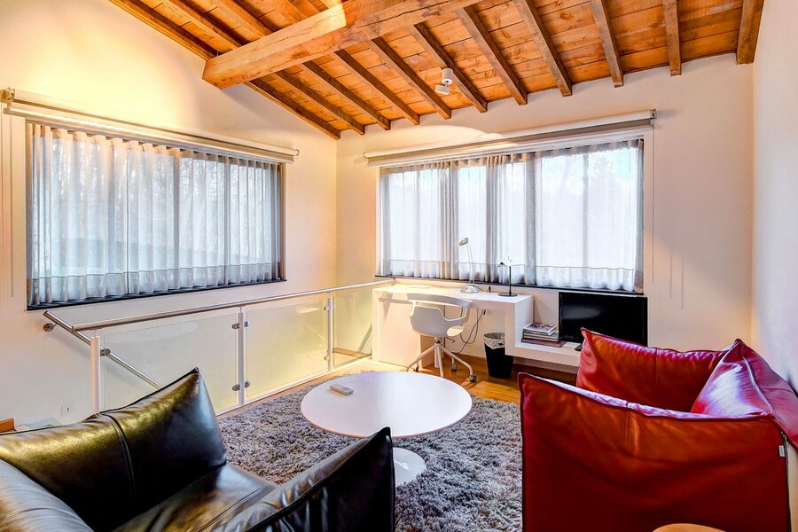 - Vaste séjour avec cuisine ouverte et vue imprenable sur le parc.