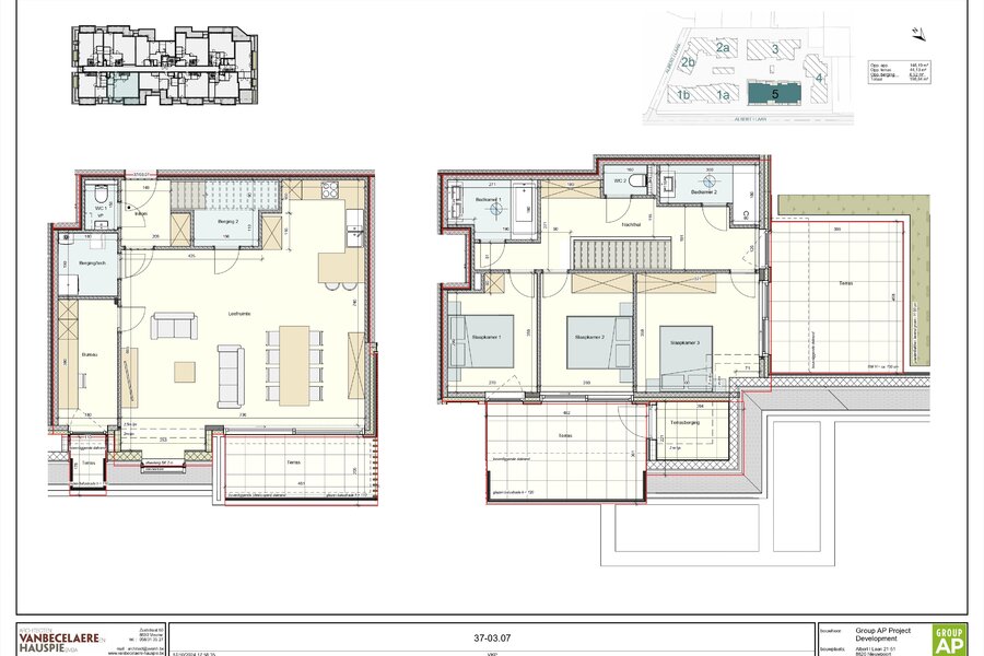 - Au 3ème étage : hall d'entrée, toilettes invités, débarras avec connexion pour machine à laver, escalier, espace de vie avec cuisine ouverte, coin salon, coin repas, débarras 2 et terrasse adjacente, bureau avec terrasse 2.