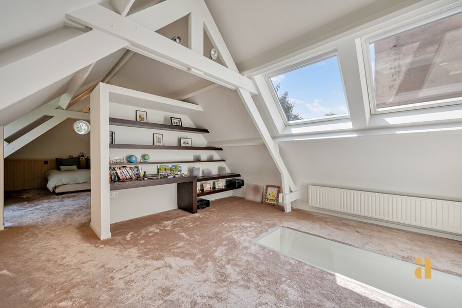 Au premier étage : une vaste chambre principale, un dressing spacieux et une salle de bains luxueuse. Les combles abritent une chambre supplémentaire avec salle de bains attenante.