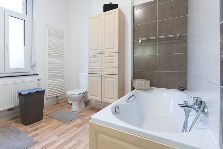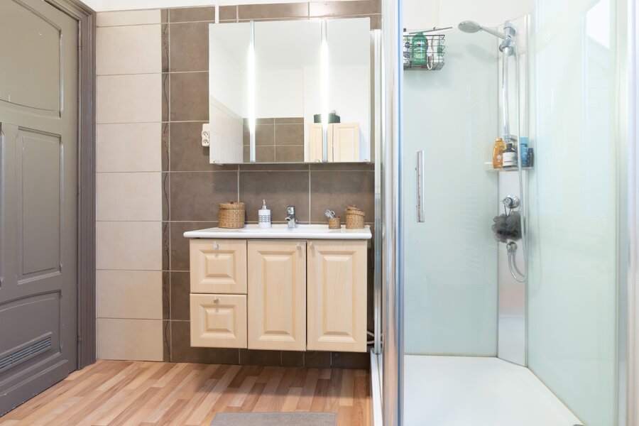 1er étage : Hall de nuit, 2 grandes chambres, salle de bains (bain, douche, WC).