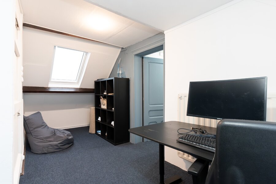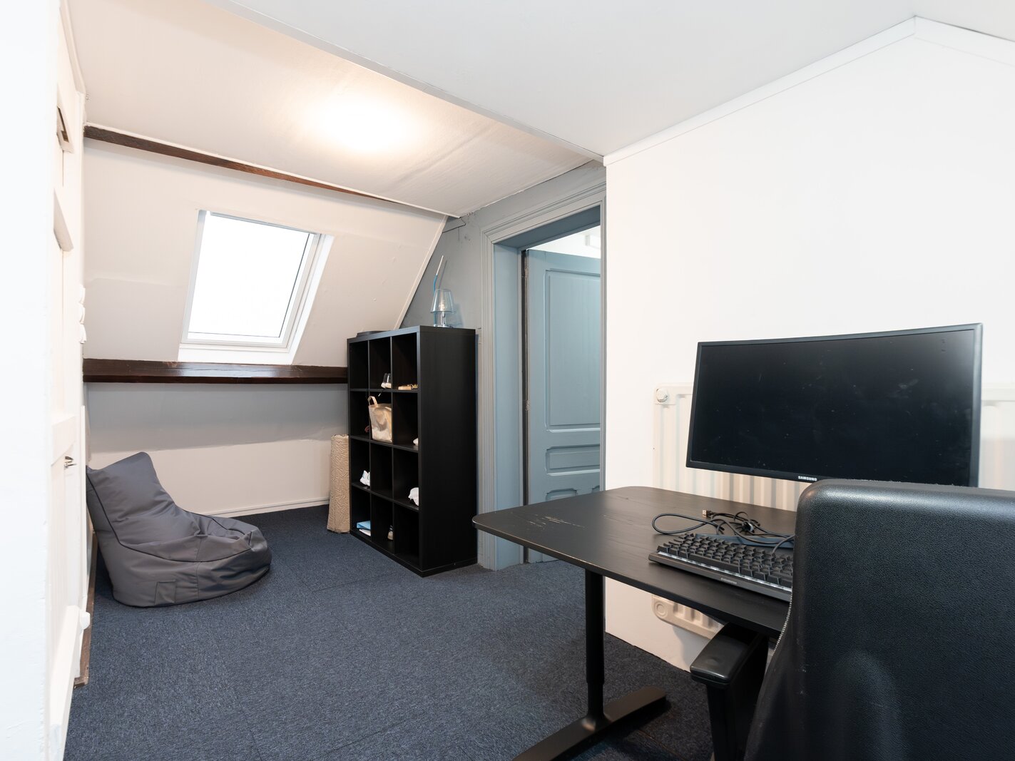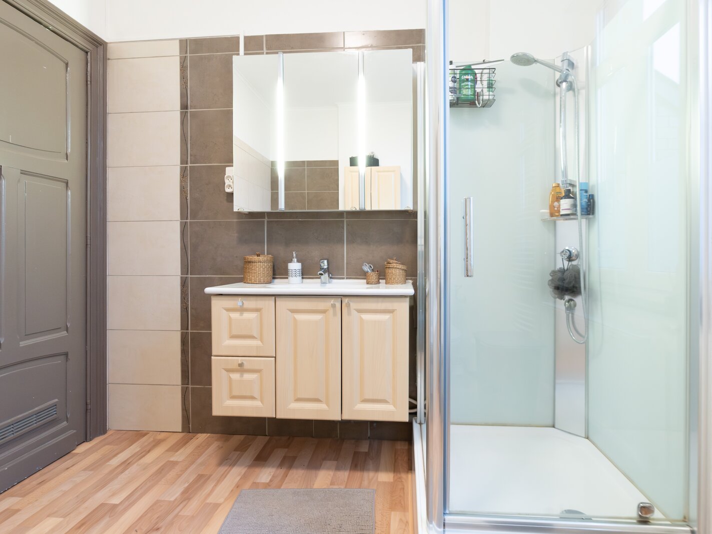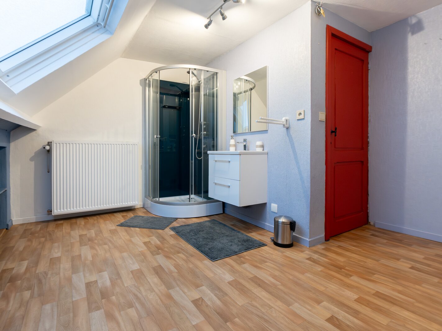 2e étage : Hall/espace bureau, 1 chambre, salle de douche.