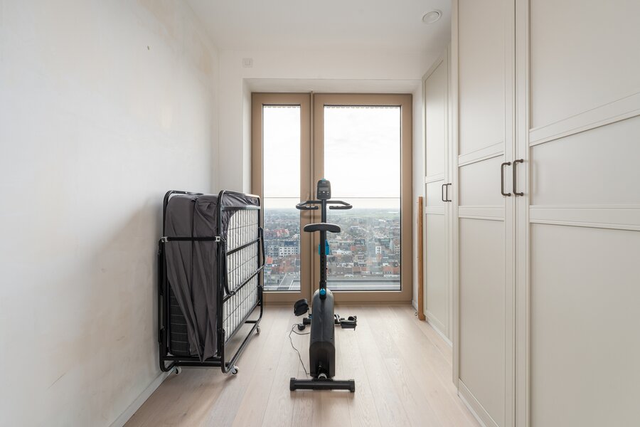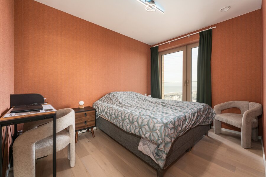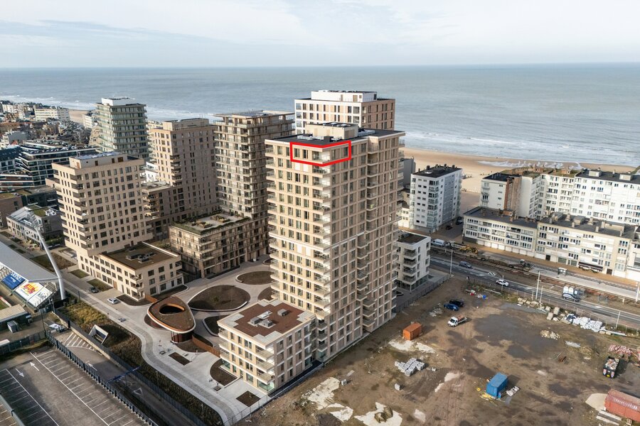 À vendre : appartement d'angle moderne avec vue panoramique au 17e étage dans le centre d'Ostende.