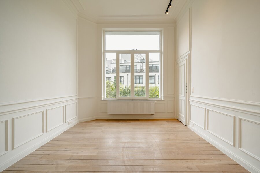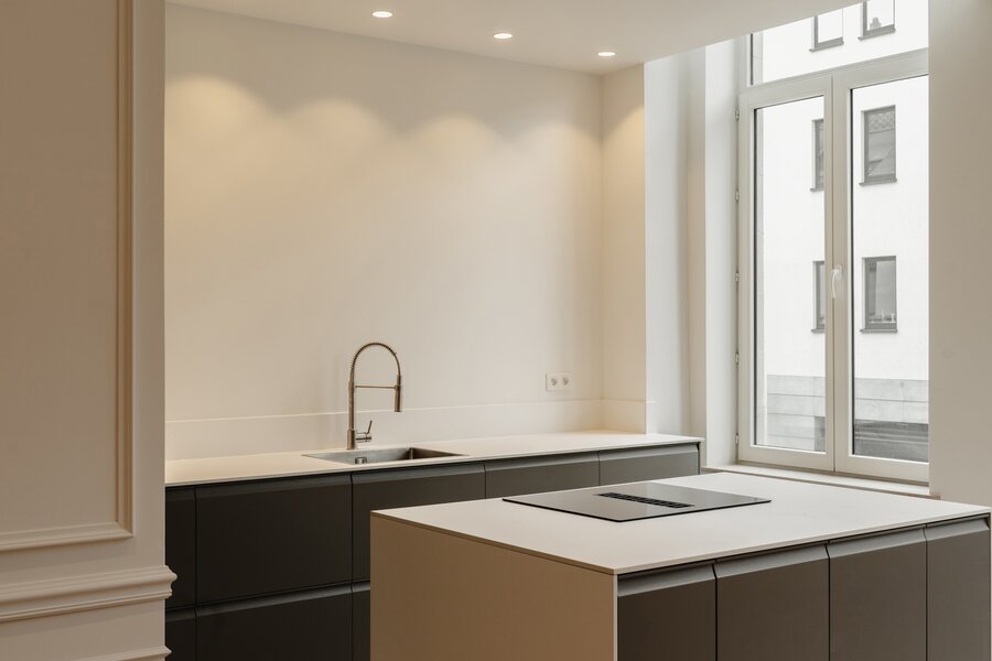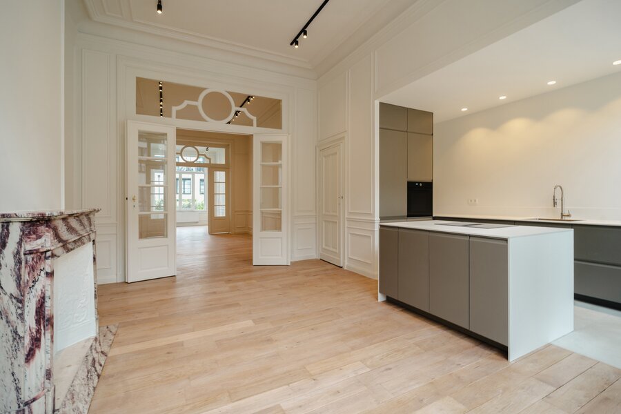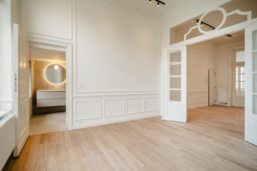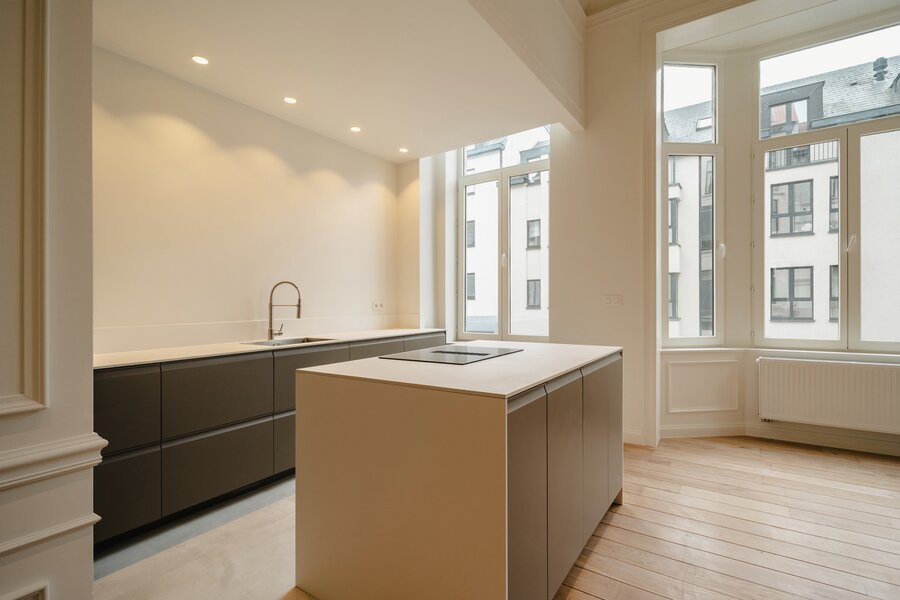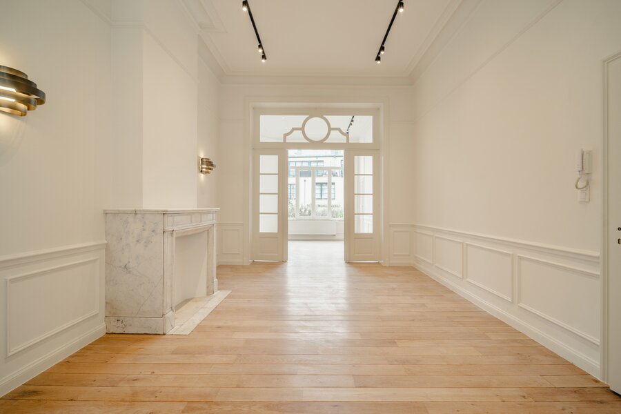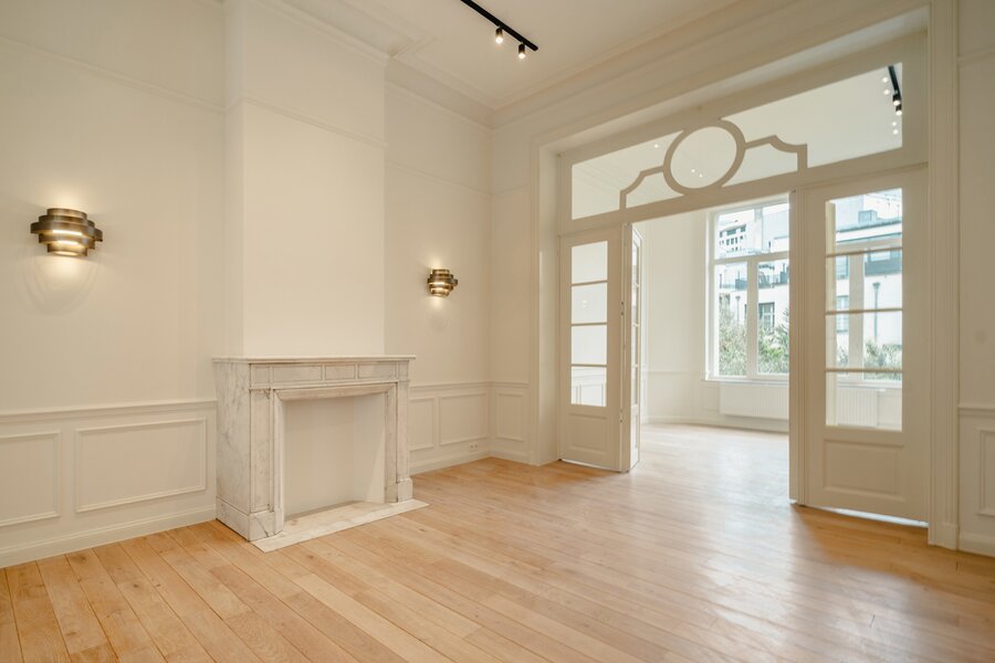 Idéalement situé à proximité immédiate de la Place du Châtelain, appartement neuf sur une surface brute selon PEB de ± 104 m² situé au second étage d'un Hôtel de maitre, offrant une chambre et un espace bureau séparé.