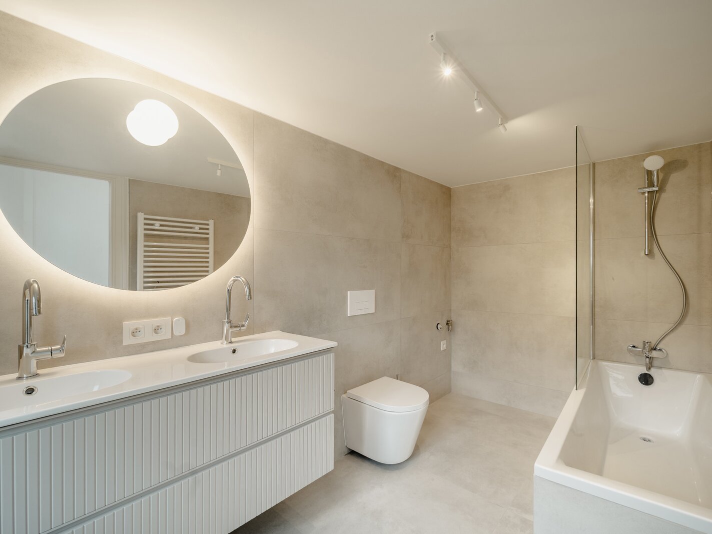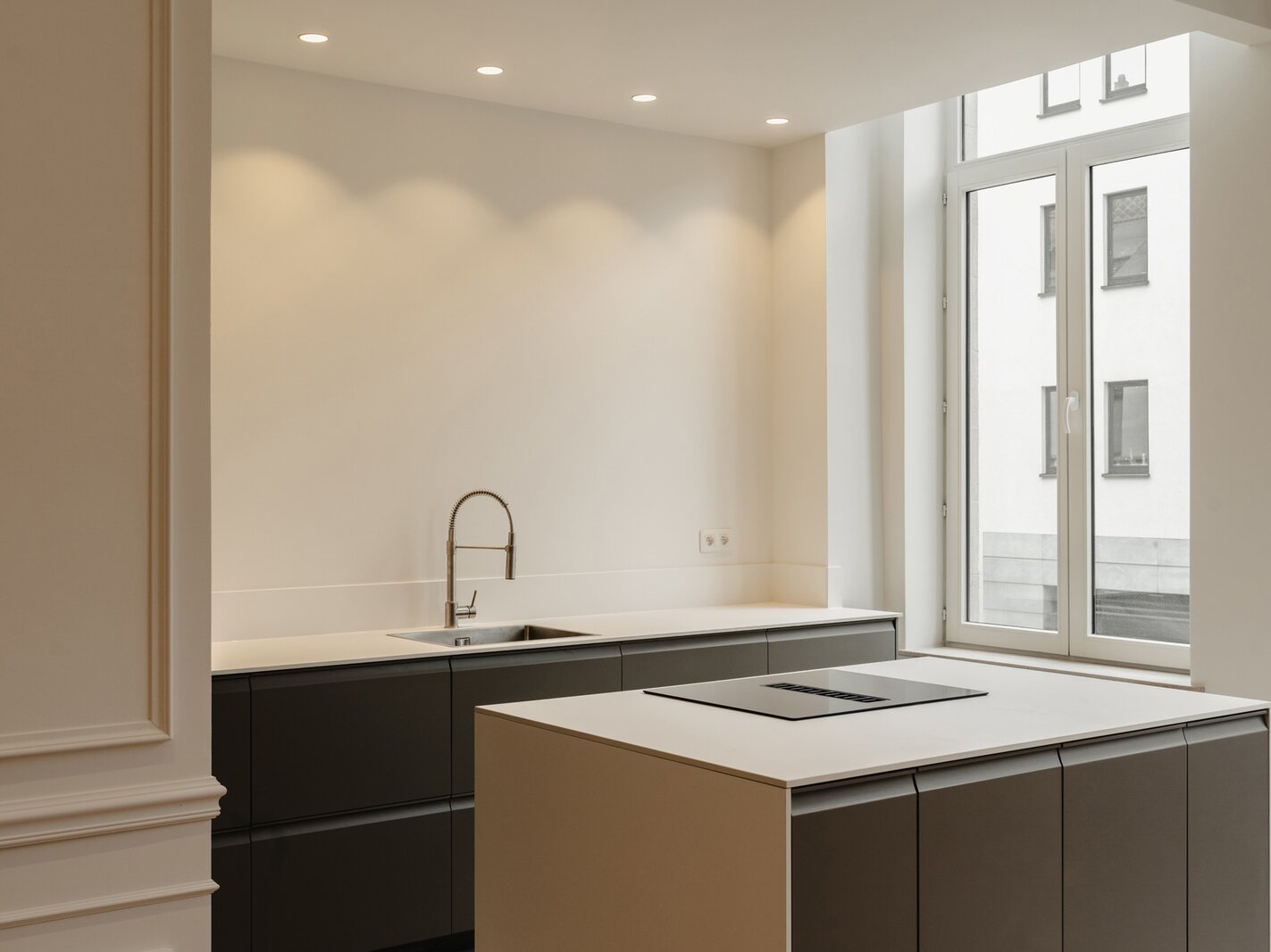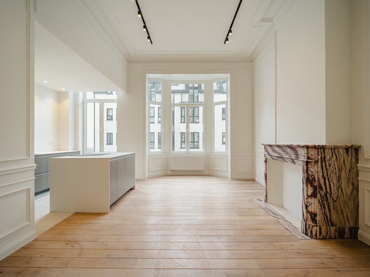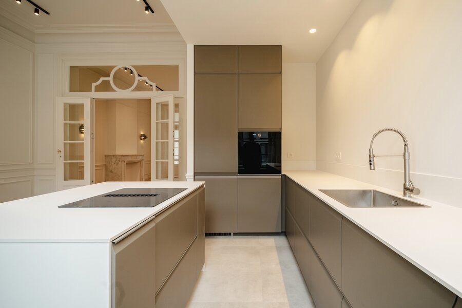 Idéalement situé à proximité immédiate de la Place du Châtelain, appartement neuf sur une surface brute selon PEB de ± 104 m² situé au second étage d'un Hôtel de maitre, offrant une chambre et un espace bureau séparé.