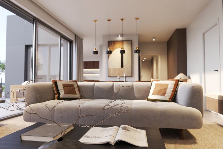 Un parc paysager privé à l’arrière du bâtiment garantit calme et sérénité, tandis que des matériaux naturels et élégants confèrent au projet une signature architecturale raffinée. Chaque détail a été pensé pour créer un cadre de vie harmonieux et lumineux où confort et esthétisme se rencontrent.