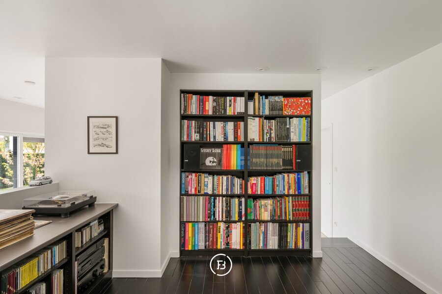 Grâce à la terrasse continue, il y a une connexion directe avec la partie professionnelle à l'étage, où se trouvent deux espaces polyvalents qui sont idéaux comme bureau, salle de réunion ou espace professionnel supplémentaire.