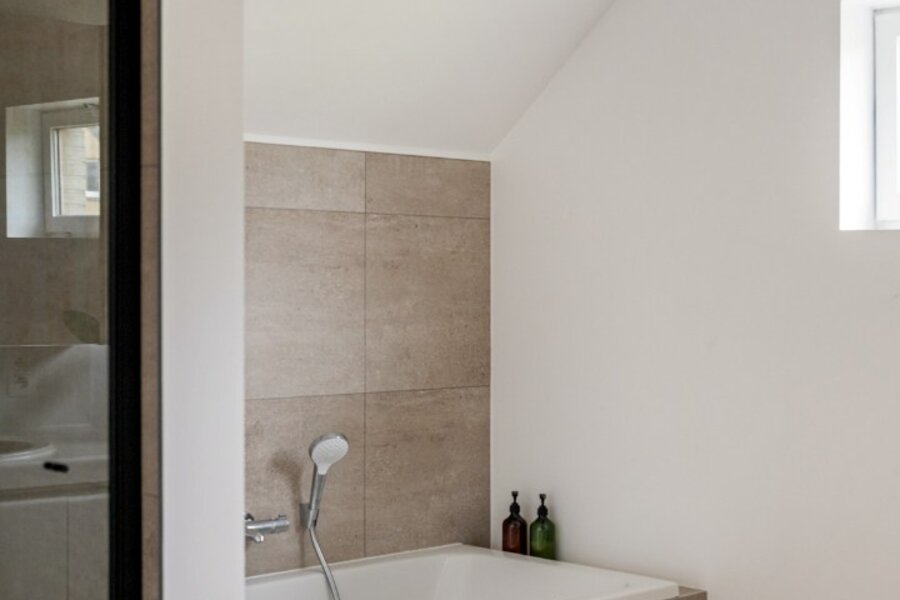 La partie résidentielle se caractérise par des espaces de vie spacieux et lumineux. Le salon est le cœur de la maison et est connecté à un bureau surélevé ou à un espace polyvalent. À côté se trouvent la salle à manger et la cuisine, qui forment ensemble un ensemble agréable et fonctionnel. À côté de la cuisine se trouve une buanderie pratique avec un accès direct au jardin et un espace de rangement séparé. En outre, la maison dispose d'un garage intégré pour deux voitures et d'un sous-sol partiel avec espace de stockage supplémentaire.