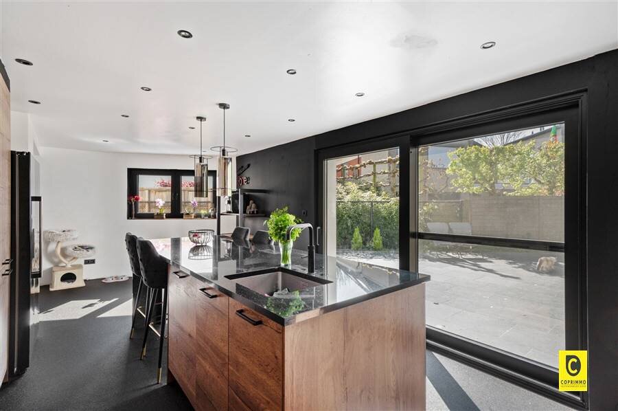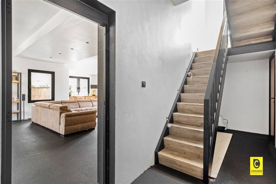Maison jumelée spacieuse et rénovée à vendre à Mortsel - Edmond Thieffrylaan 132. Au rez-de-chaussée, vous trouverez un hall d'entrée spacieux, des toilettes pour invités, un garage intérieur et un espace de vie lumineux avec cuisine ouverte. Cette dernière s'ouvre sur une terrasse et un jardin orientés sud-est. Le premier étage comprend quatre chambres spacieuses, dont deux avec mezzanine, et une grande salle de bains rénovée avec douche à l'italienne, double lavabo et toilettes. Le deuxième étage offre une cinquième chambre, idéale comme chambre de maître ou de loisirs. Prêt à être emménagé, beaucoup de lumière, d'espace et de confort dans un emplacement de choix !
