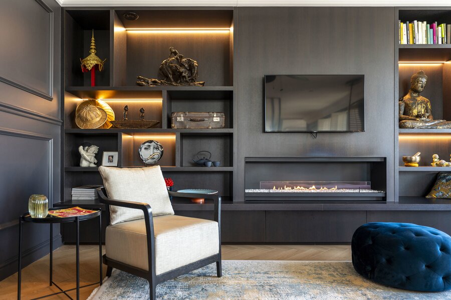 Le salon baigné de lumière constitue le cœur de la maison et s'ouvre naturellement sur les terrasses accueillantes, d'où vous pourrez profiter d'une vue imprenable en toute tranquillité. La cheminée à gaz apporte une touche chaleureuse et pleine de charme au salon.