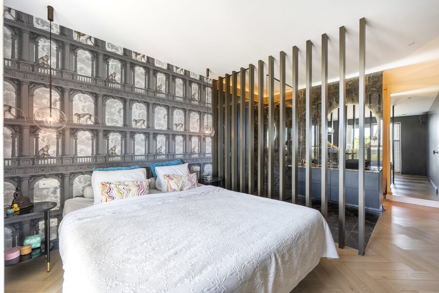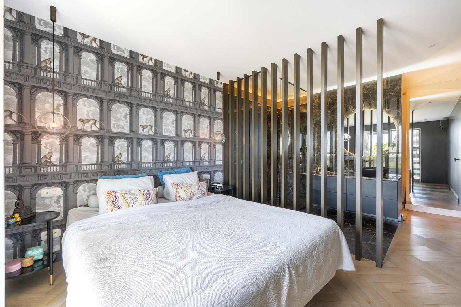 L'appartement comprend deux chambres spacieuses, chacune offrant beaucoup d'espace et de lumière naturelle, ainsi que deux salles de bains modernes, aménagées avec des matériaux de grande qualité et offrant un confort contemporain.
