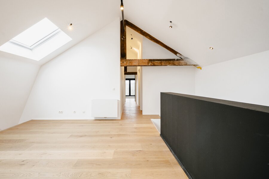 Le duplex proposé développe une superficie d’environ 240 m² et se distingue par ses volumes harmonieux, sa belle luminosité et son architecture unique. L’appartement se compose d’un vaste espace de vie de plus de 38 m² comprenant salon, salle à manger et une cuisine sur mesure entièrement équipée. L’ensemble s’ouvre sur une superbe terrasse de ±18 m² idéalement orientée sud-ouest, créant un agréable prolongement extérieur. La partie nuit comprend quatre chambres, dont une chambre principale avec sa salle de bains privative, ainsi que deux autres salles d'eau. Deux emplacements de parking et une grande cave complètent ce bien.