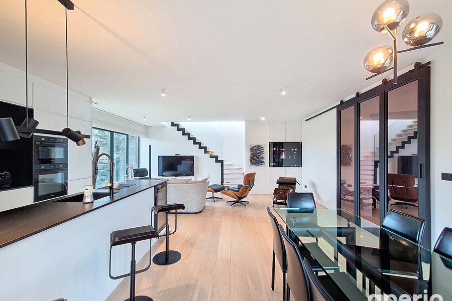 Découvrez ce superbe penthouse neuf de 3 chambres et 2 salles de bain, sur 3 façades, offrant une luminosité remarquable et une sensation d’espace rare. Nichée en seconde ligne, au cœur d’un parc et sans vis-à-vis, la propriété offre un cadre de vie paisible et privilégié. Son atout majeur : une magnifique terrasse en rooftop de 38 m², avec espace de rangement, depuis laquelle vous profiterez d’une vue dégagée et apaisante. Ce penthouse fait partie d’une petite copropriété intimiste composée de 4 appartements et d’un bureau, entièrement rénovée dans un élégant style industriel, en hommage à l’histoire du lieu, autrefois atelier de forgerons artistiques et site de production de biscuits. Le bien est proposé avec une place de parking couverte ainsi qu’une grande cave, ajoutant un confort supplémentaire au quotidien. Les équipements contemporains garantissent un confort optimal : châssis triple vitrage, chauffage par le sol, ventilation double flux (type D), des armoires encastrées, ainsi qu’une cuisine haut de gamme entièrement équipée, dotée notamment d’une cave à vin intégrée dans l’îlot central. L’ensemble allie avec harmonie le caractère d’une ancienne bâtisse et le confort moderne, créant une atmosphère chaleureuse et raffinée. Idéalement situé, l’appartement permet des déplacements faciles à pied, à vélo, en transports en commun ou en voiture. Un bien rare, alliant charme et modernité, qui mérite assurément votre visite.! Contactez-nous le 0479 900 427.