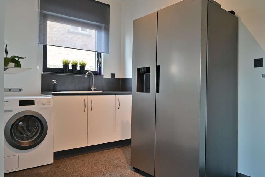 - Wasplaats (9,6 m²) met spoelbak en voorziening voor wasmachine en droogkast.
